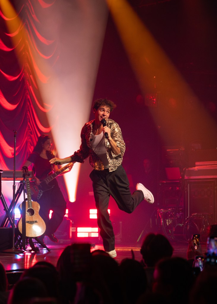 During the 30-minute changeover, the fans’ excitement increased with each passing minute. Right before the lights dimmed, “What Makes You Beautiful” by One Direction started playing, hyping the crowd up. As soon as the song ended, the band took the stage and the intro to the show started playing. The second Joshua Bassett jumped (yes, literally jumped) on stage, the energy levels in the room immediately raised through the roof. Every single person in the room started dancing and singing the lyrics to the title track, “The Golden Years.”
