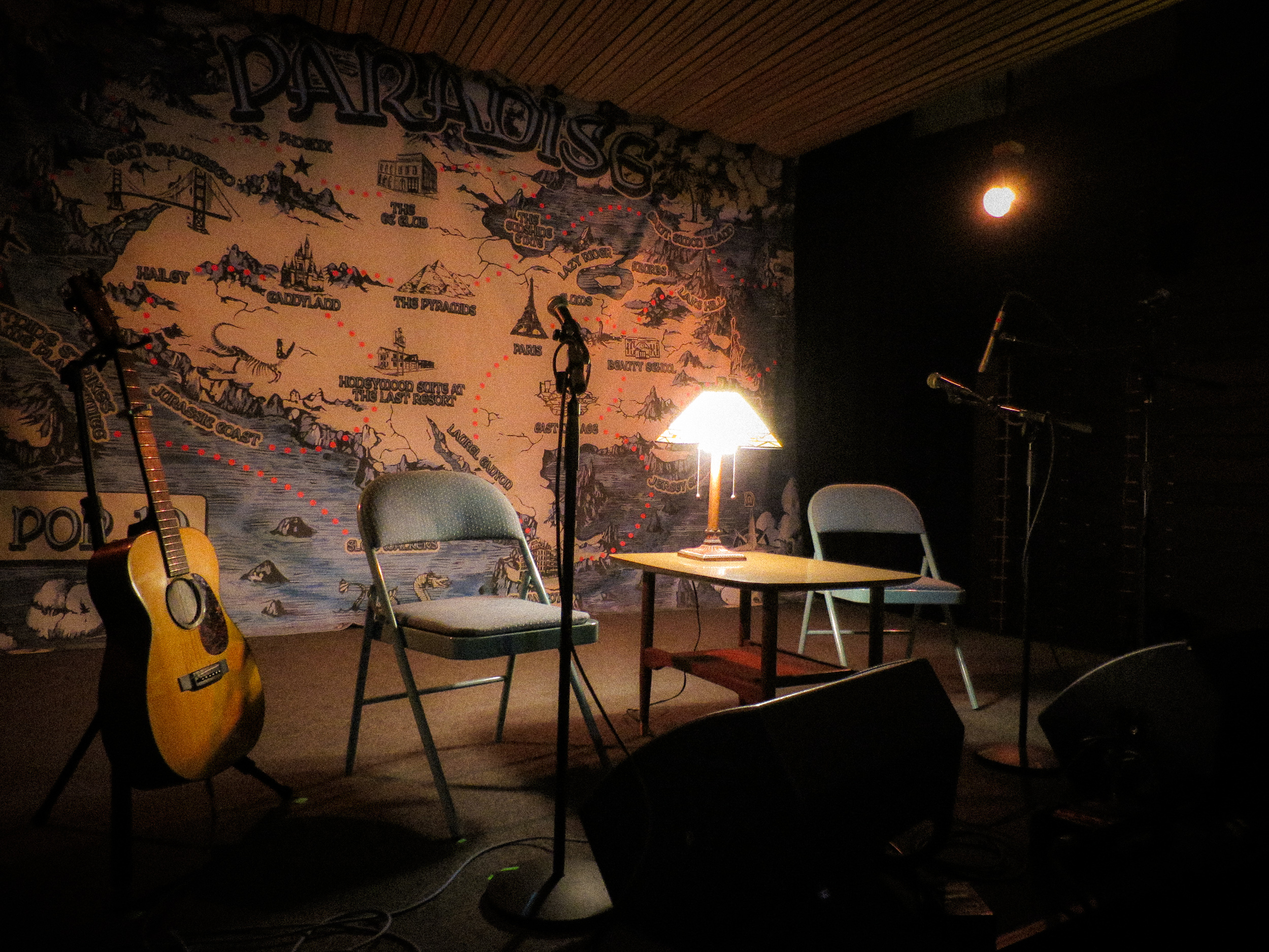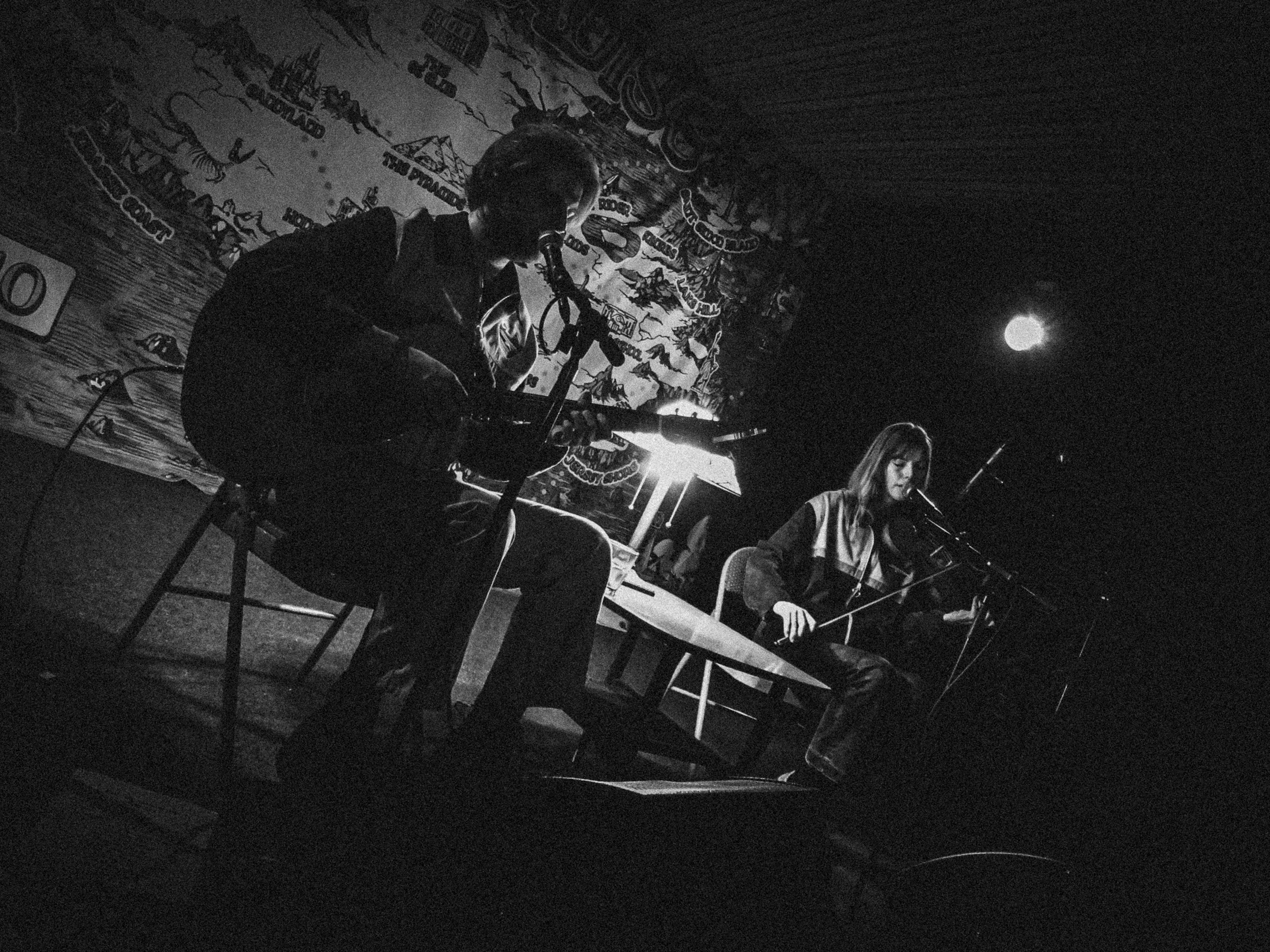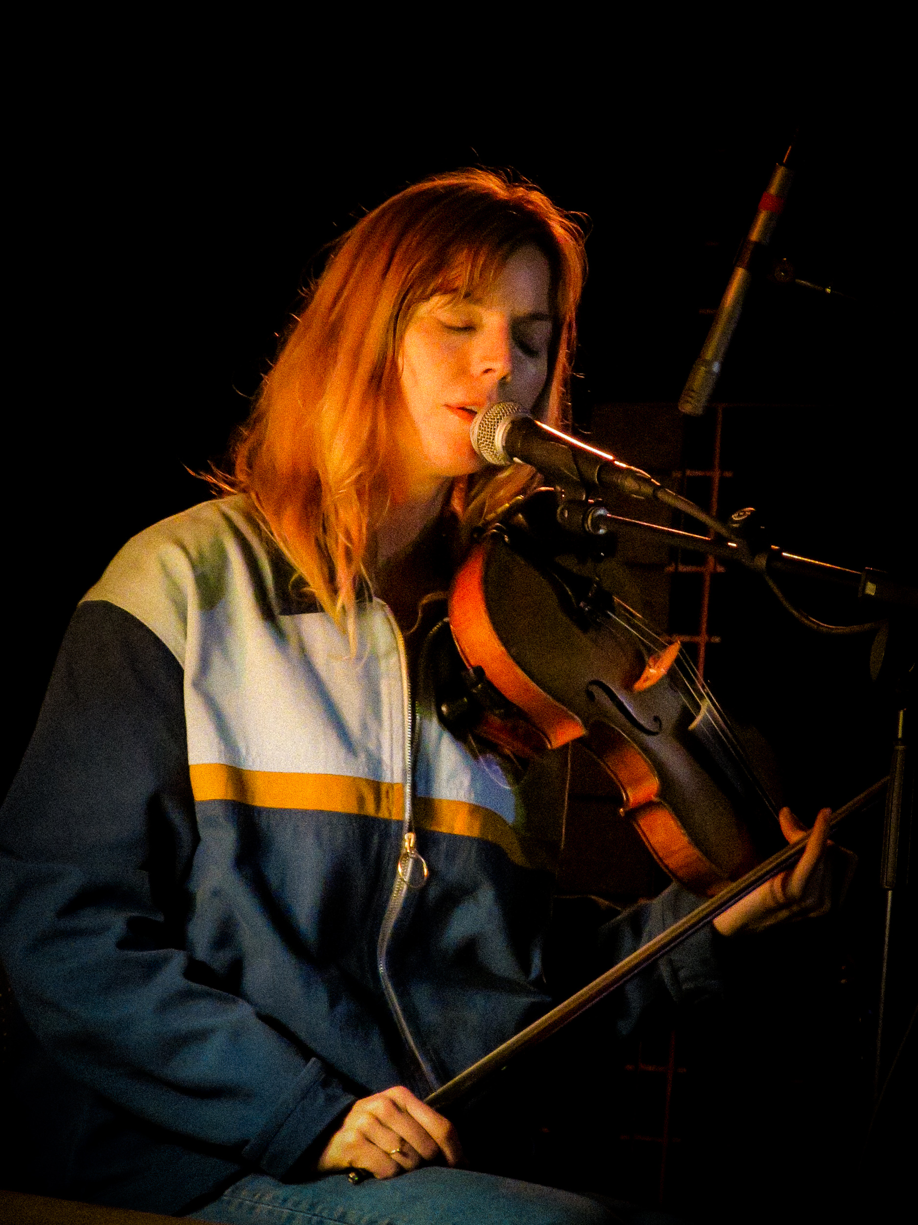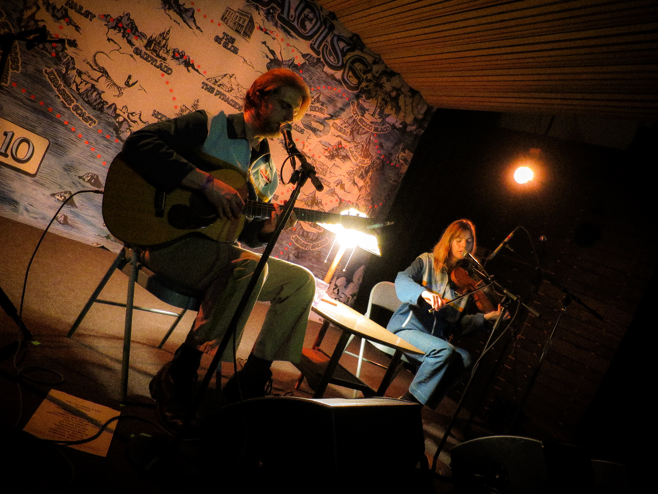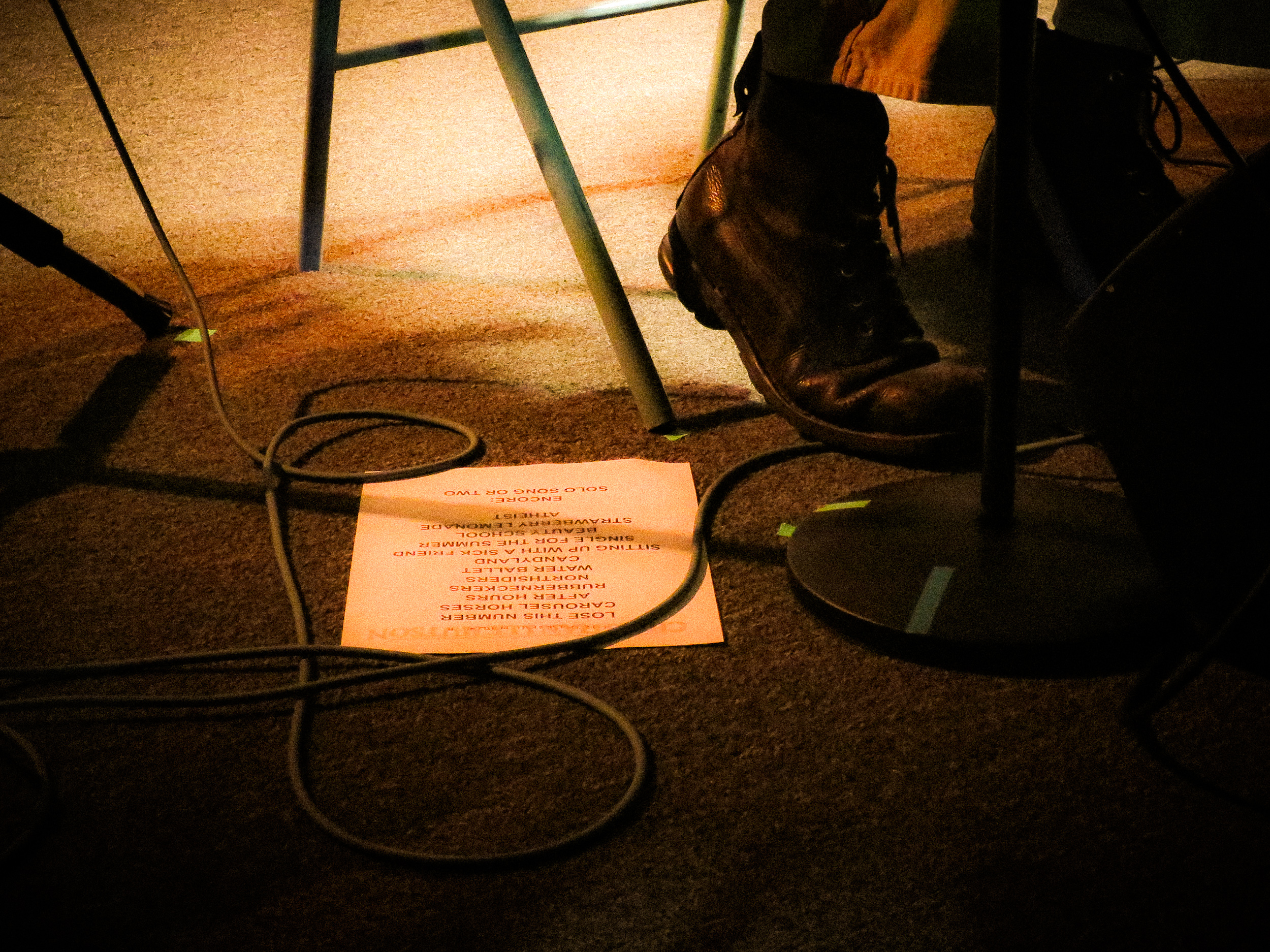 Hutson quickly set a casual tone and friendly rapport with the audience, encouraging folks to ask questions while tuning his guitar. He made sure none of his three albums were left out of the setlist, with emphasis on his latest LP. Jorgensen’s backup vocals and bowed harmonies blended in perfectly with Hutson’s intricate guitar work and soft voice. The already tiny room seemed to shrink with his performance, as though he sang to each and every human being on a personal level. He intercut the set with stories that made the eager crowd feel as if they had suddenly been whisked away to a comedy club. I never knew I wanted a two-for-one music and stand-up show, but now I can’t imagine anything better! He talked about writing the song “After Hours” following a “near death experience,” where he smoked too much weed and met God.