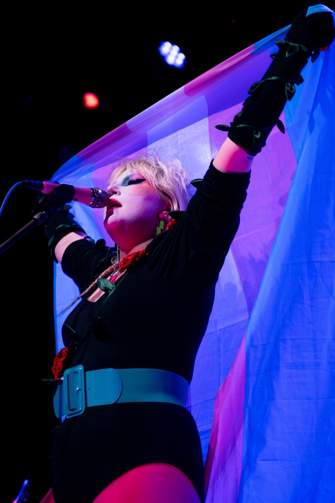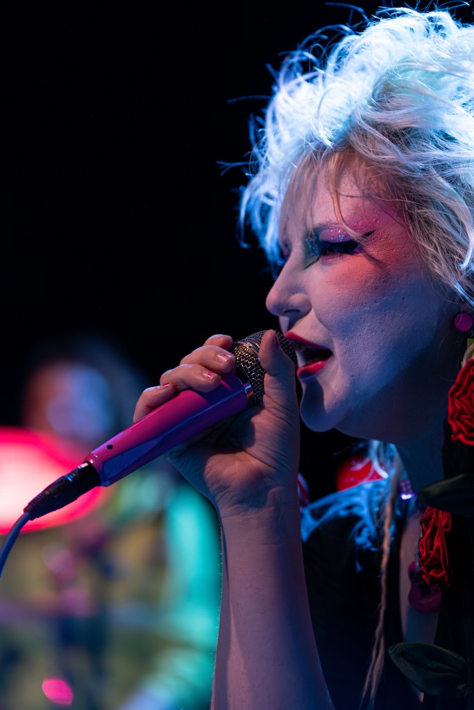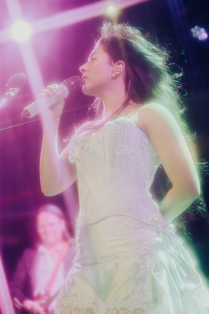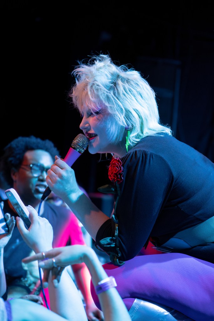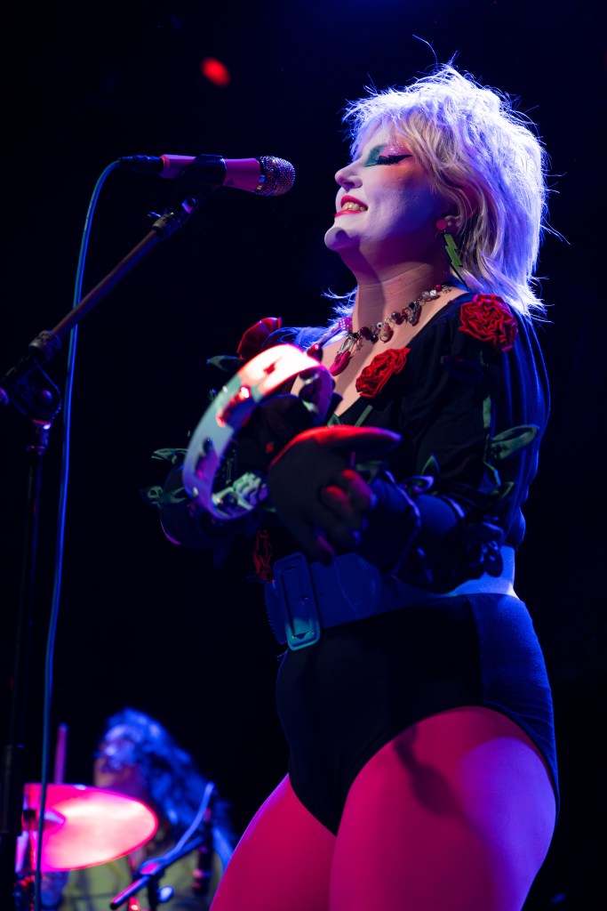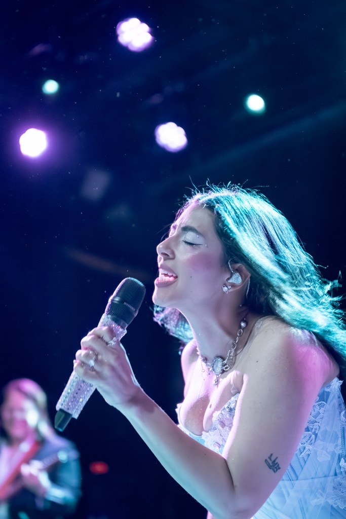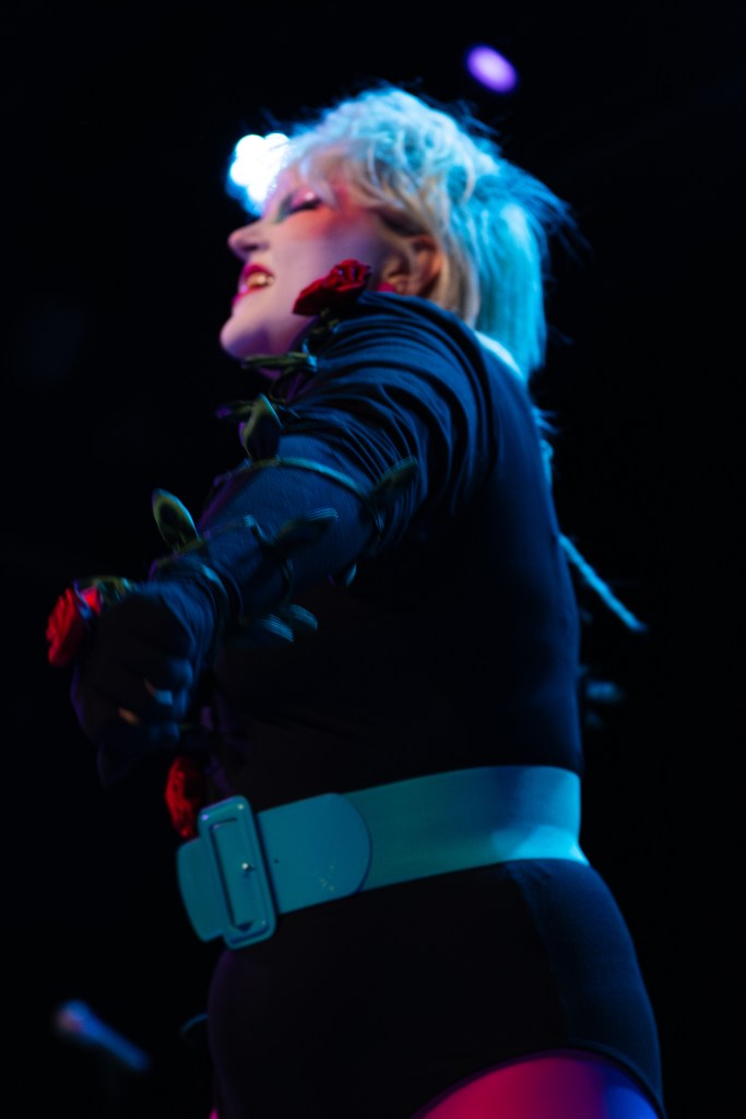 Pop artist Caroline Kingsbury opened the night and delivered a high energy, absolutely unforgettable performance. Caroline has a unique and colorful aesthetic that blends seamlessly with her refreshingly honest discography, which pulls sonic influences from musical legends such as Bruch Springsteen and The Killers. Caroline is rising to prominence due to her song “Kissing Someone Else,” an upbeat highlight off her debut album, Heaven’s Just A Flight. Most recently, she collaborated with fellow queer artist MARIS on the infectiously catchy indie pop single, “Give Me A Sign.” Caroline was extremely engaging on stage, taking the time to interact with fans in the crowd and even joining them in the pit for the final song of her set. I stopped by Caroline’s merch table after her performance and she took the time to speak with me about her experience on the tour. I also shared how much I love both “Give Me A Sign” and her most recent solo EP, I Really Don’t Care! It’s clear from our conversation, as well as her opening set on The Mirrorball Tour, that Caroline is an authentic and talented artist that everyone should have on their radar.
