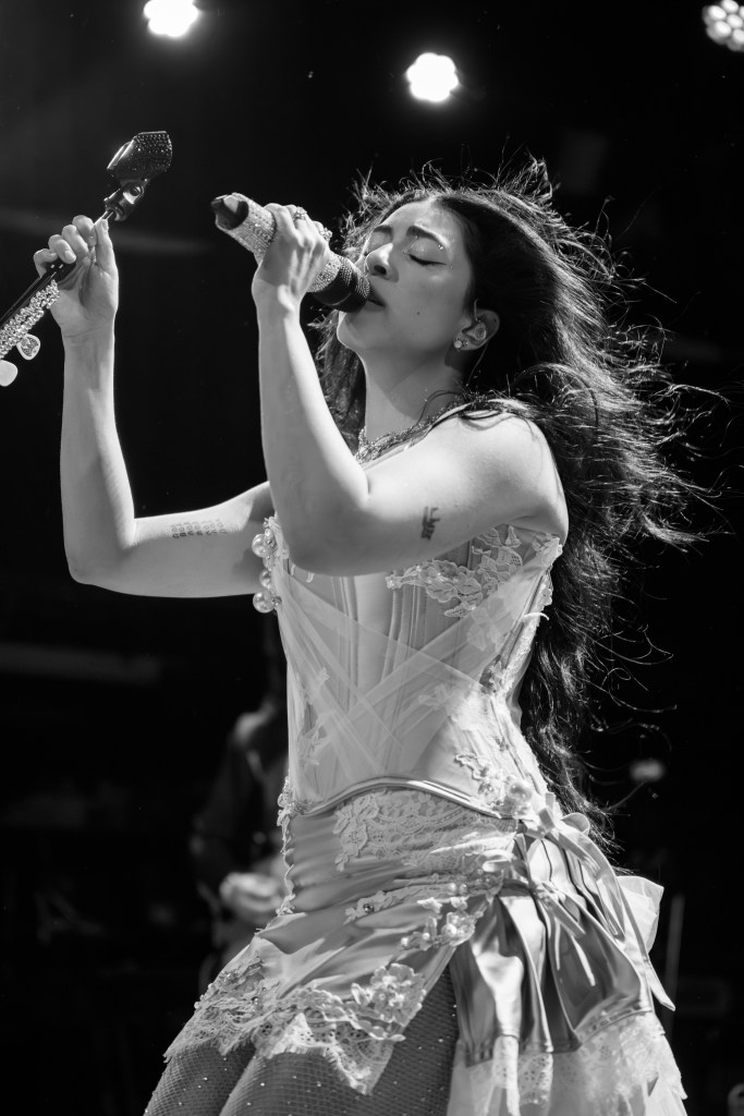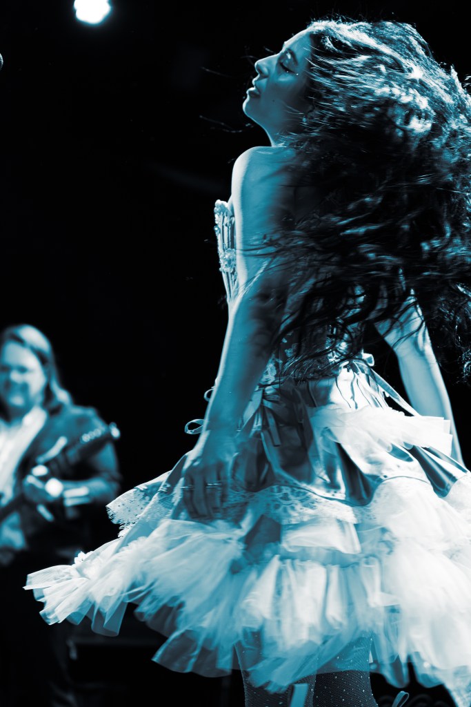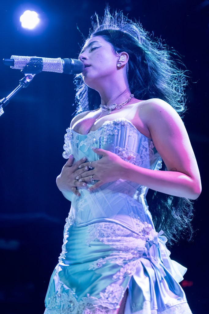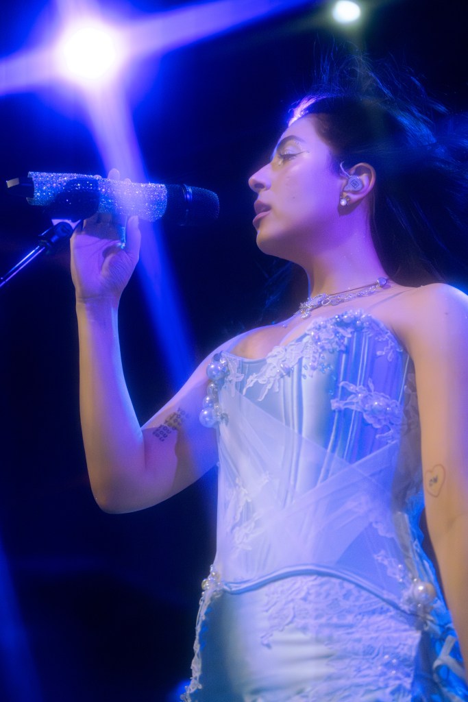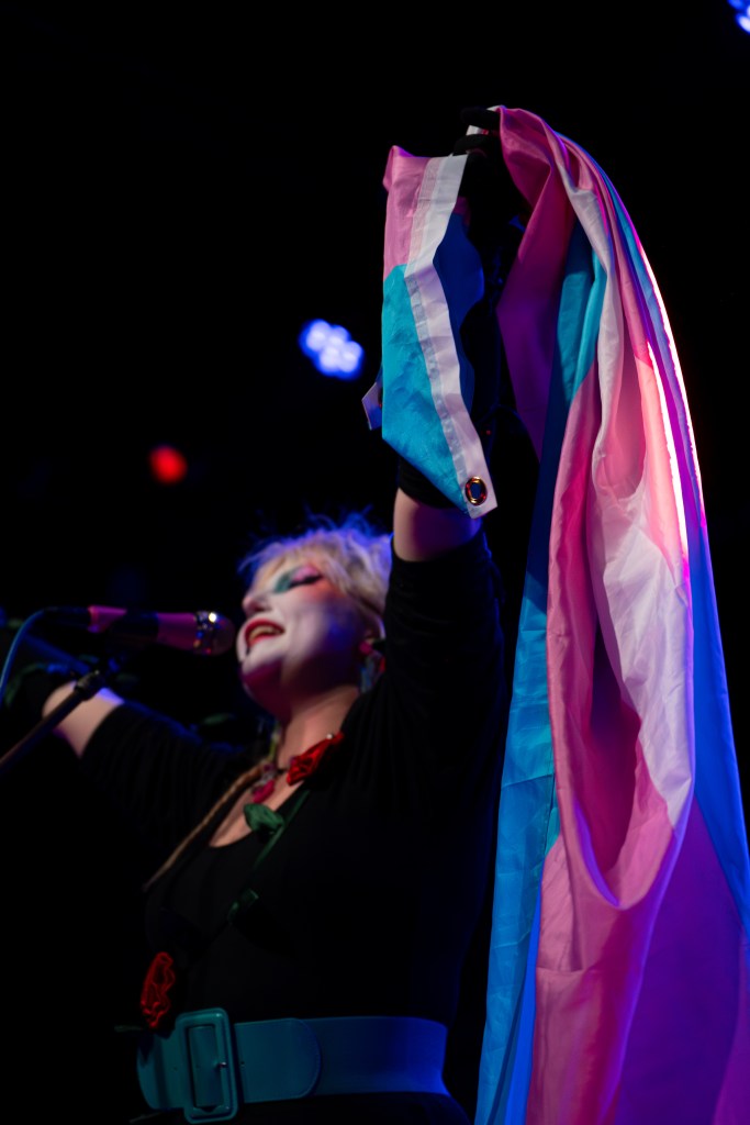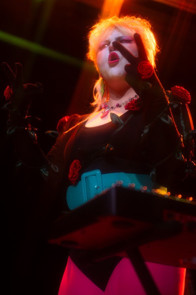 Pop artist Caroline Kingsbury opened the night and delivered a high energy, absolutely unforgettable performance. Caroline has a unique and colorful aesthetic that blends seamlessly with her refreshingly honest discography, which pulls sonic influences from musical legends such as Bruch Springsteen and The Killers. Caroline is rising to prominence due to her song “Kissing Someone Else,” an upbeat highlight off her debut album, Heaven’s Just A Flight. Most recently, she collaborated with fellow queer artist MARIS on the infectiously catchy indie pop single, “Give Me A Sign.” Caroline was extremely engaging on stage, taking the time to interact with fans in the crowd and even joining them in the pit for the final song of her set. I stopped by Caroline’s merch table after her performance and she took the time to speak with me about her experience on the tour. I also shared how much I love both “Give Me A Sign” and her most recent solo EP, I Really Don’t Care! It’s clear from our conversation, as well as her opening set on The Mirrorball Tour, that Caroline is an authentic and talented artist that everyone should have on their radar.