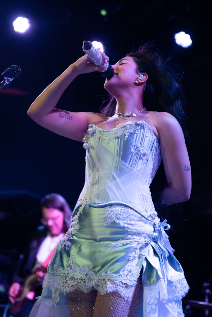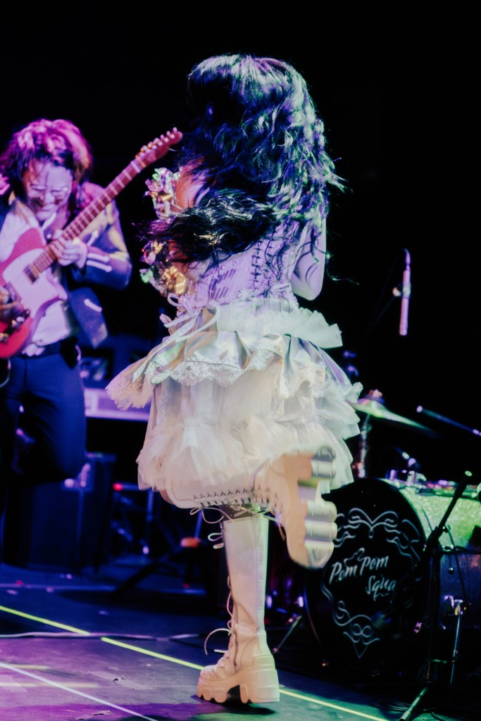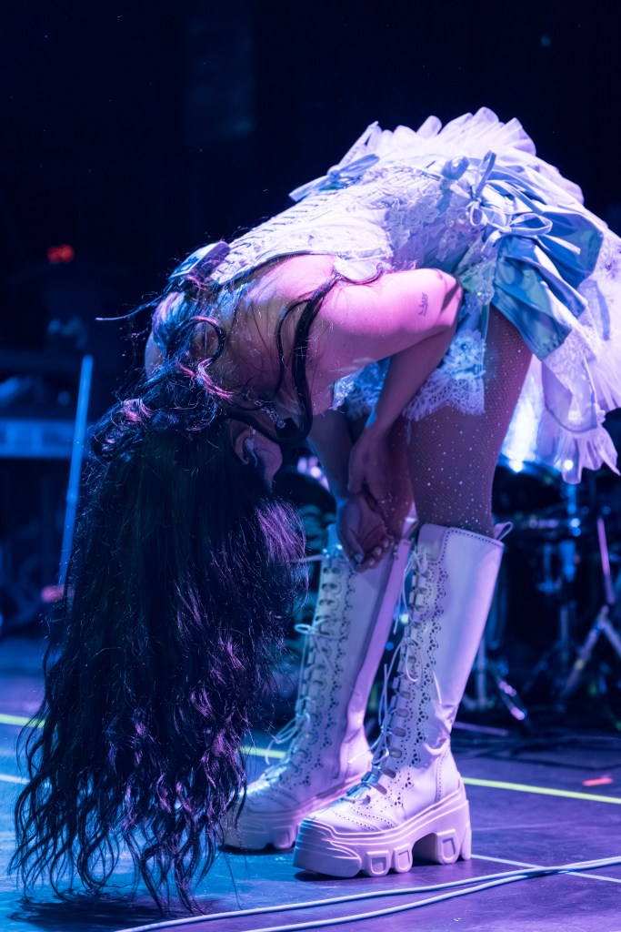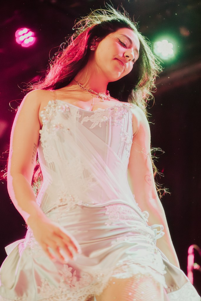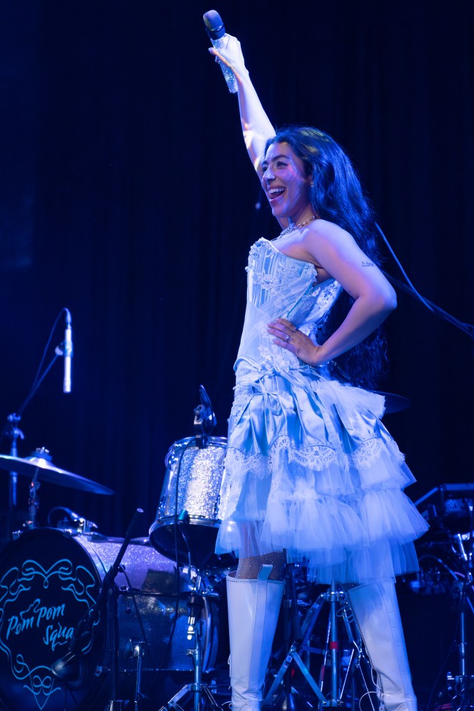 Pom Pom Squad took the stage at precisely 9PM and instantly captivated the crowd with their enthralling performance of “Downhill,” which is the first song off their most recent album, Mirror Starts Moving Without Me. Mia and her bandmates’ energy matched the audiences’, which was evident from the collective dancing and singing in the room. The group’s amazing onstage chemistry was also immediately noticeable. Some of the highlights of Pom Pom Squad’s set were a guest appearance from Mia’s mom before “Street Fighter,” as well as the band’s cover of Metro’s “Black Sheep.” Pom Pom Squad’s Alice-in-Wonderland meets cheerleading squad aesthetic heightens their onstage presence and worldbuilding, making each of their shows a memorable experience. They should definitely be on your concert bucket list, and you can stream Mirror Starts Moving Without Me wherever you get your music now.