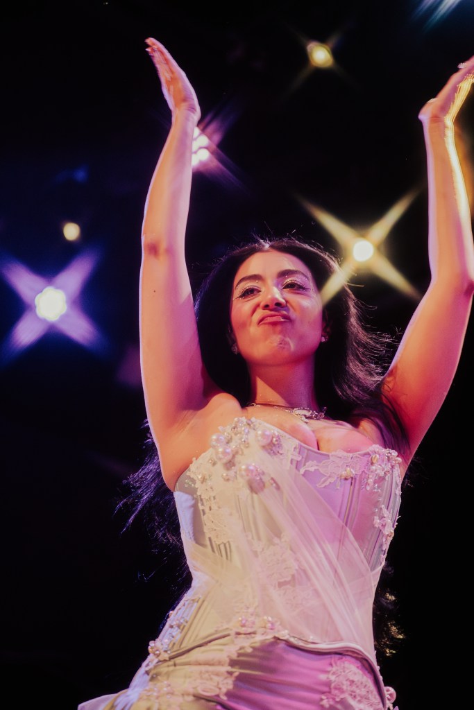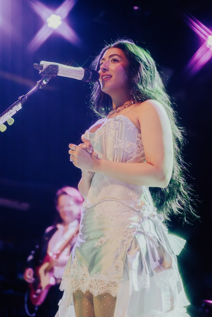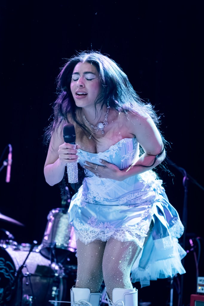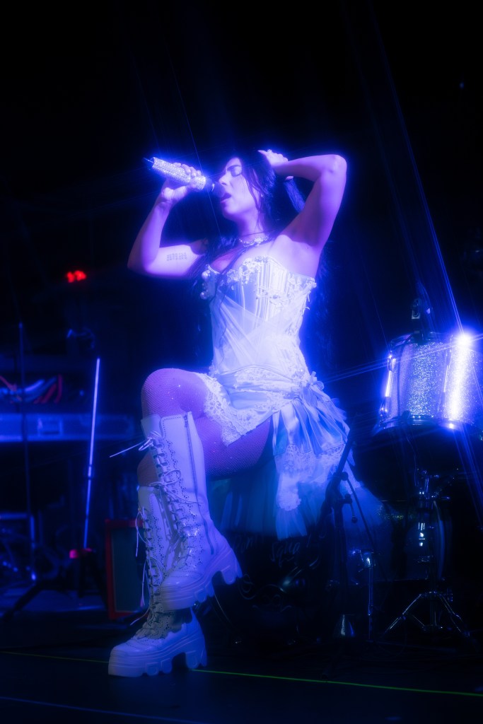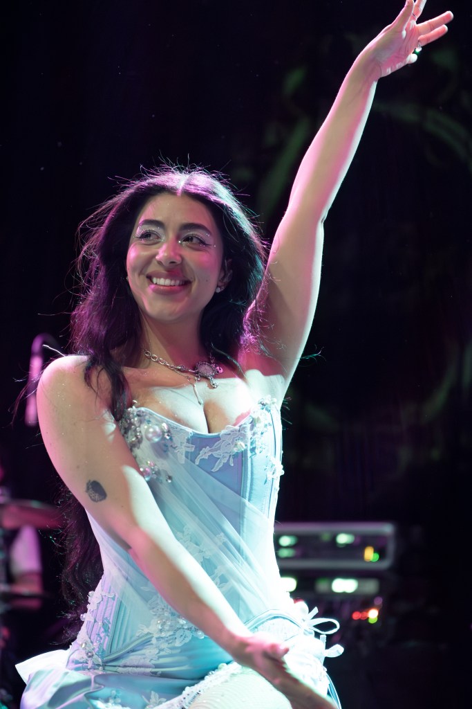 Pom Pom Squad took the stage at precisely 9PM and instantly captivated the crowd with their enthralling performance of “Downhill,” which is the first song off their most recent album, Mirror Starts Moving Without Me. Mia and her bandmates’ energy matched the audiences’, which was evident from the collective dancing and singing in the room. The group’s amazing onstage chemistry was also immediately noticeable. Some of the highlights of Pom Pom Squad’s set were a guest appearance from Mia’s mom before “Street Fighter,” as well as the band’s cover of Metro’s “Black Sheep.” Pom Pom Squad’s Alice-in-Wonderland meets cheerleading squad aesthetic heightens their onstage presence and worldbuilding, making each of their shows a memorable experience. They should definitely be on your concert bucket list, and you can stream Mirror Starts Moving Without Me wherever you get your music now.