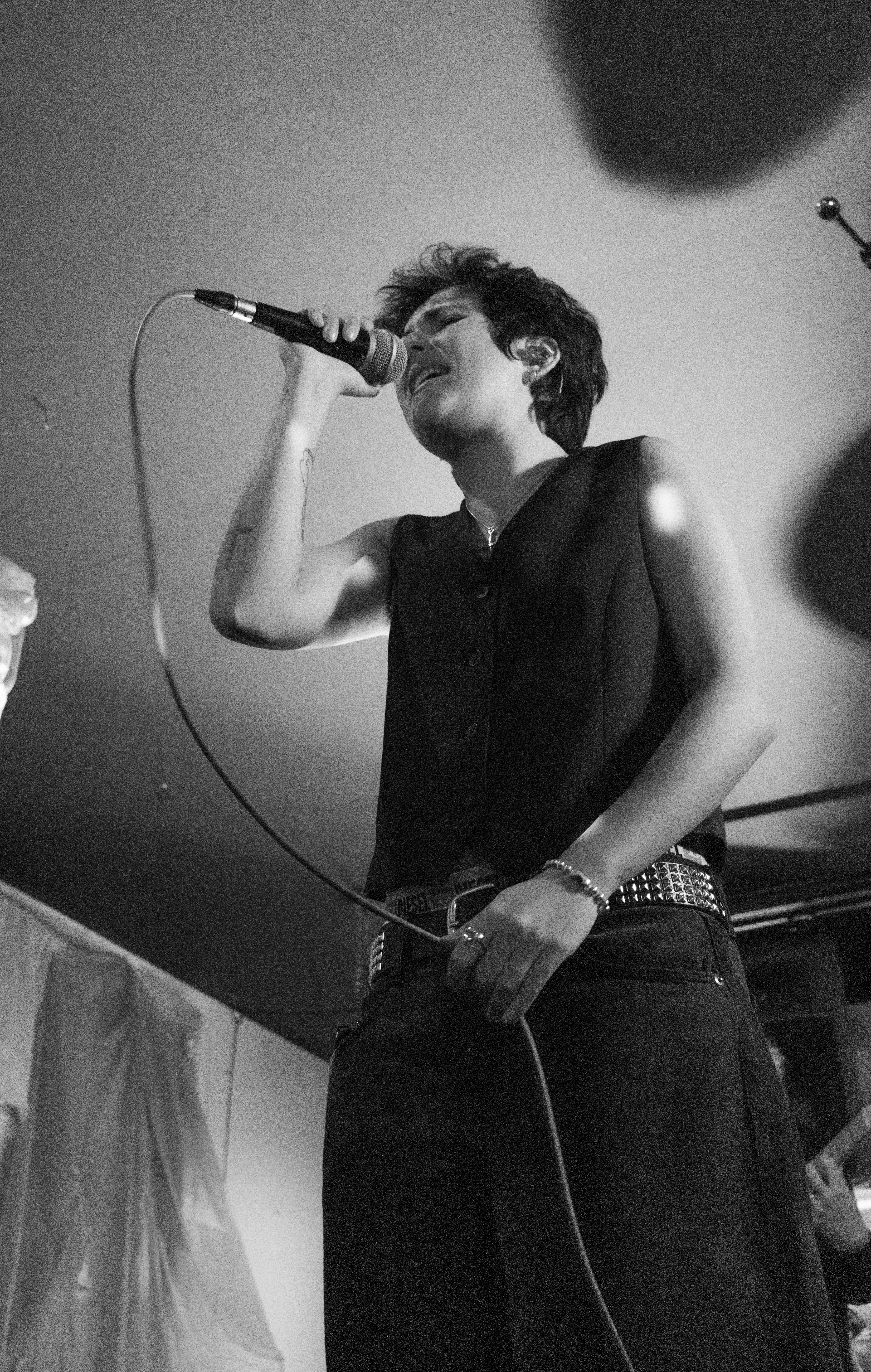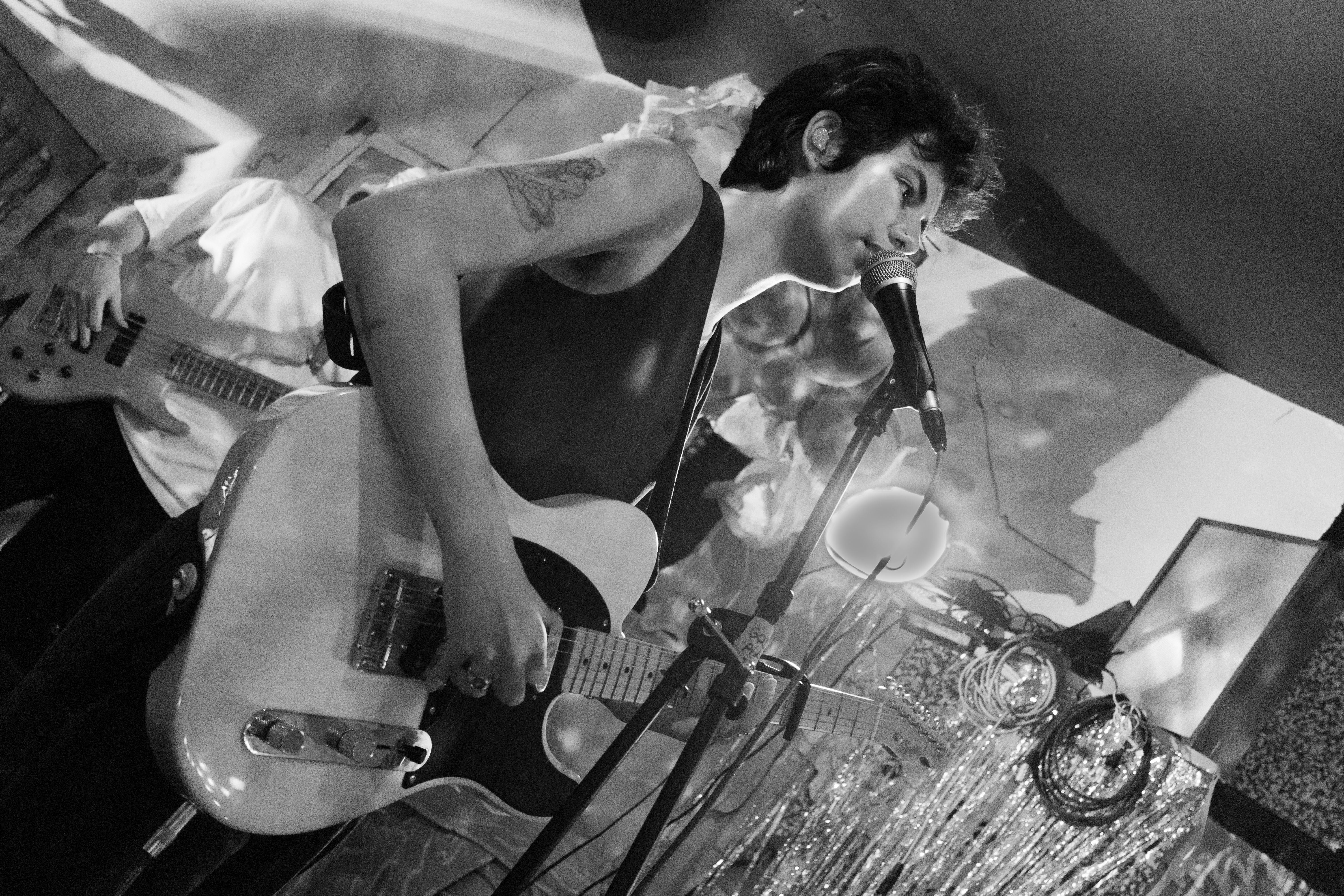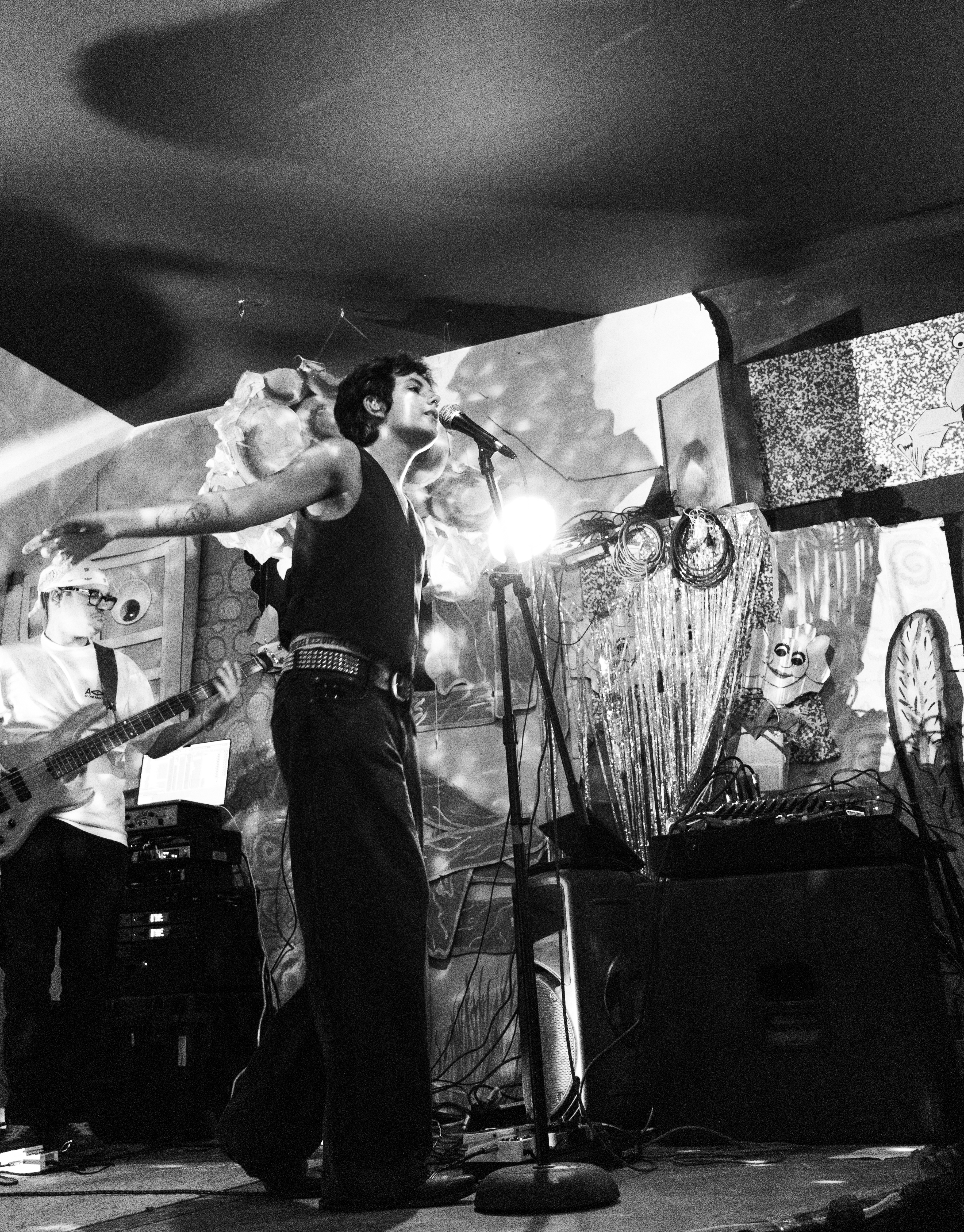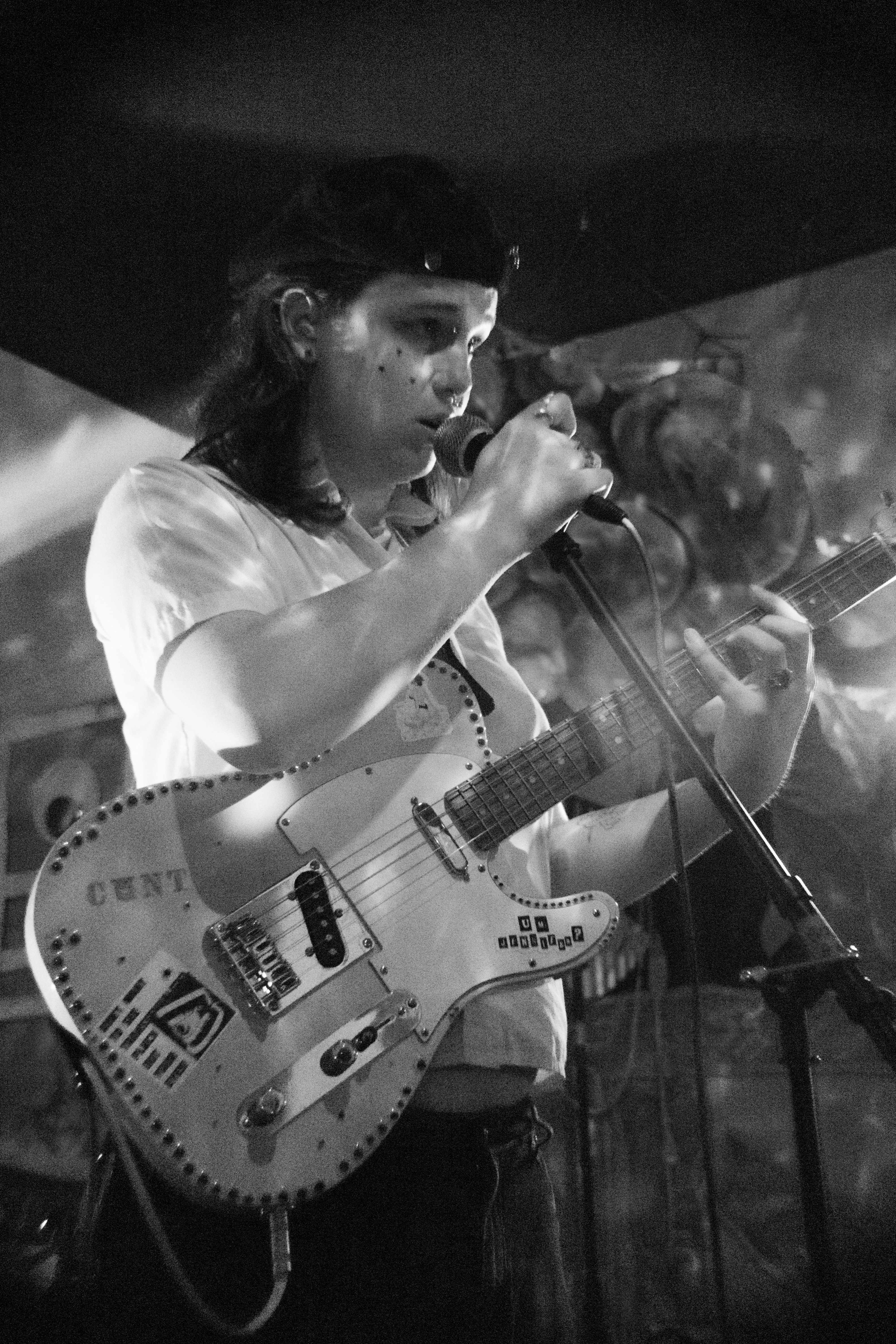 On the heels of a successful debut album release with Um Comma Jennifer Question Mark, singers and guitarists Elijah Scarpati and Fig Regan played exclusively from the album’s tracklist. The excitement in their theatrical stage presence was contagious. During “Old Grimes,” Elijah pulled his pants to his ankles and danced around the stage in only his boxers before kneeling against Fig. He also proudly changed the lyrics from “six months” to “two years” in “Went on T,” indicating the updated amount of time since he’d started taking testosterone. Fig dramatically acted out the lyrics of “Fishy,” imitating tears before before snapping back to her spirited rendition of everything that makes her “the hottest fucking bitch in New York City.” With every line the crowd sang back to the band, their tones grew jauntier and their grins wider.