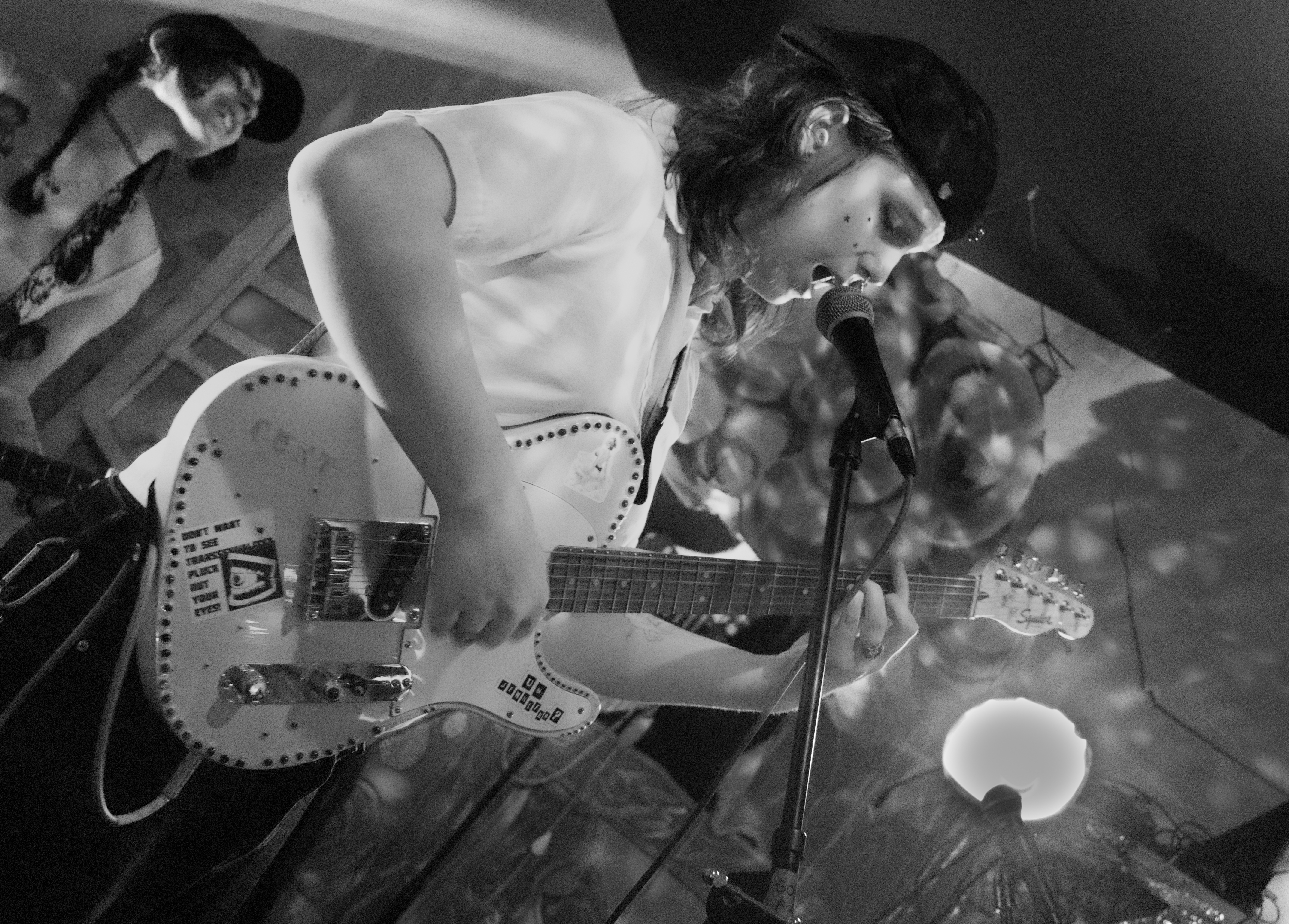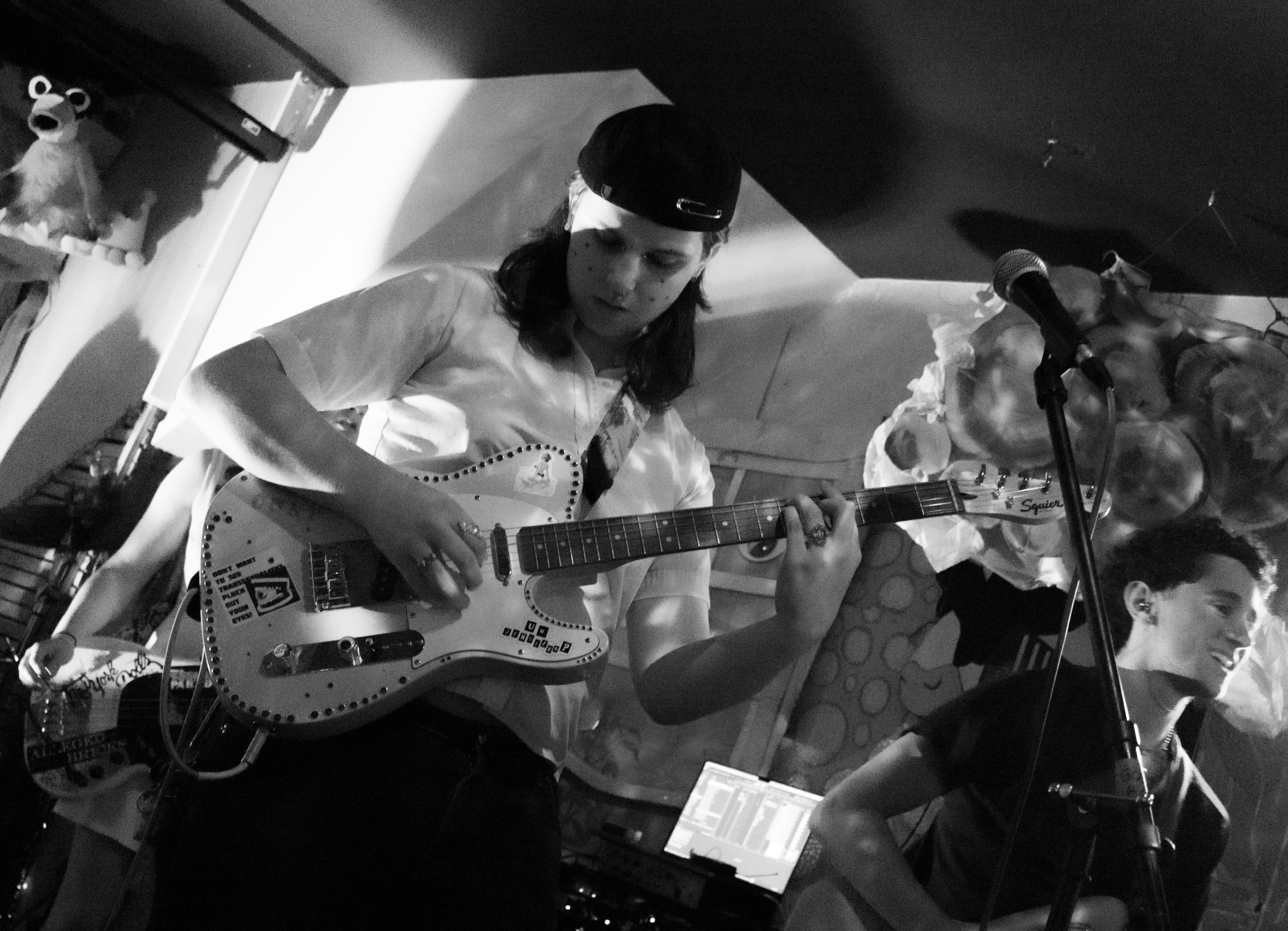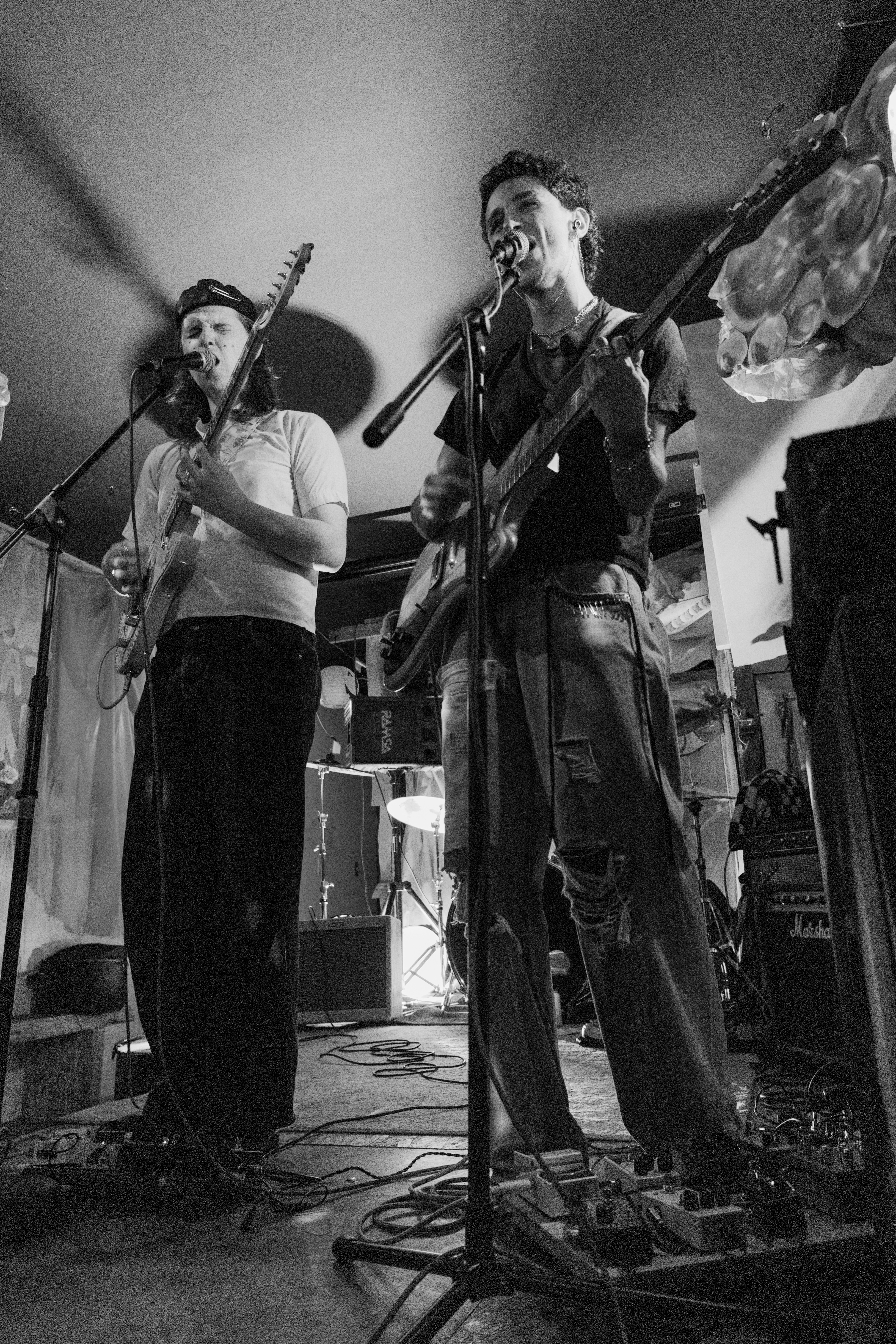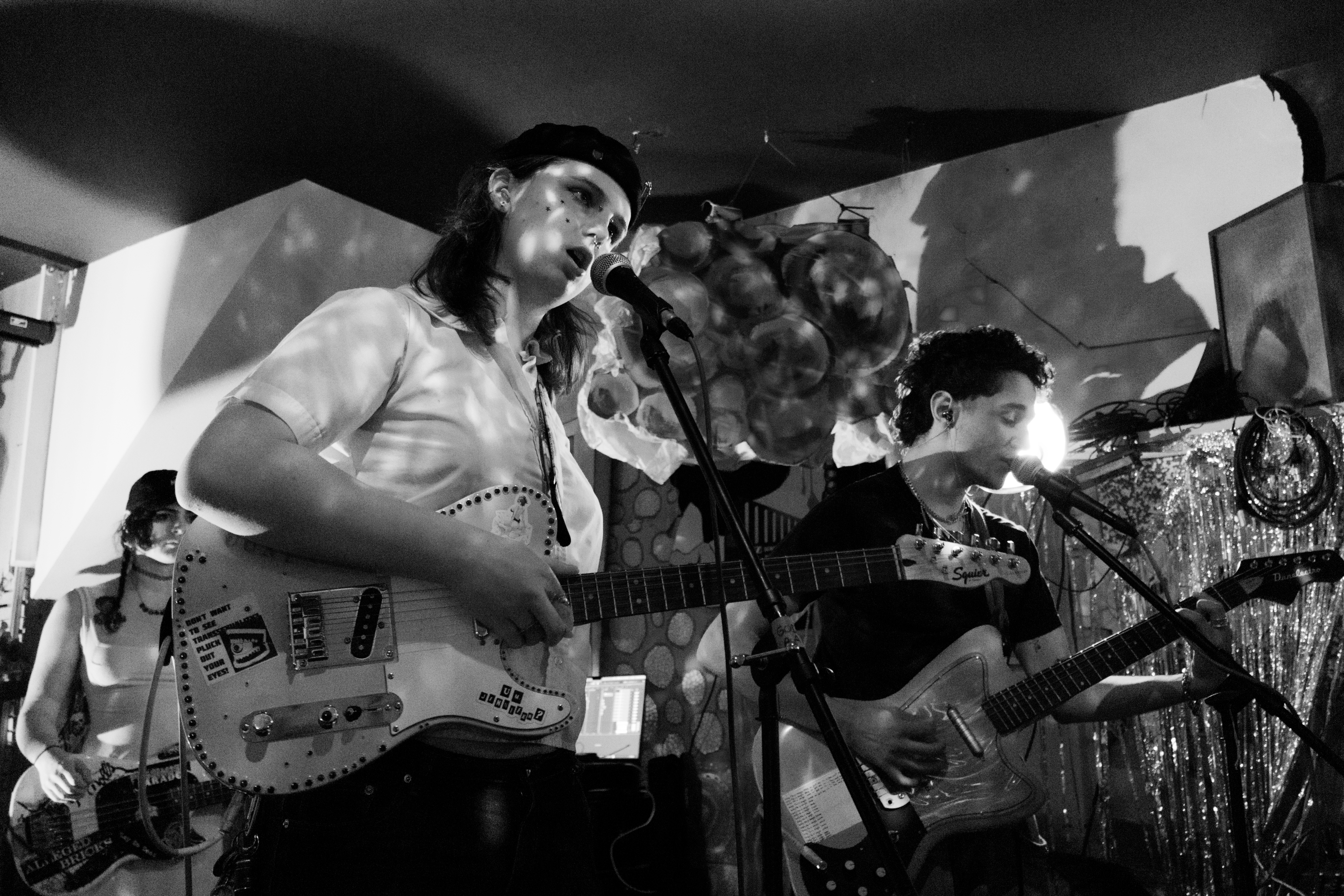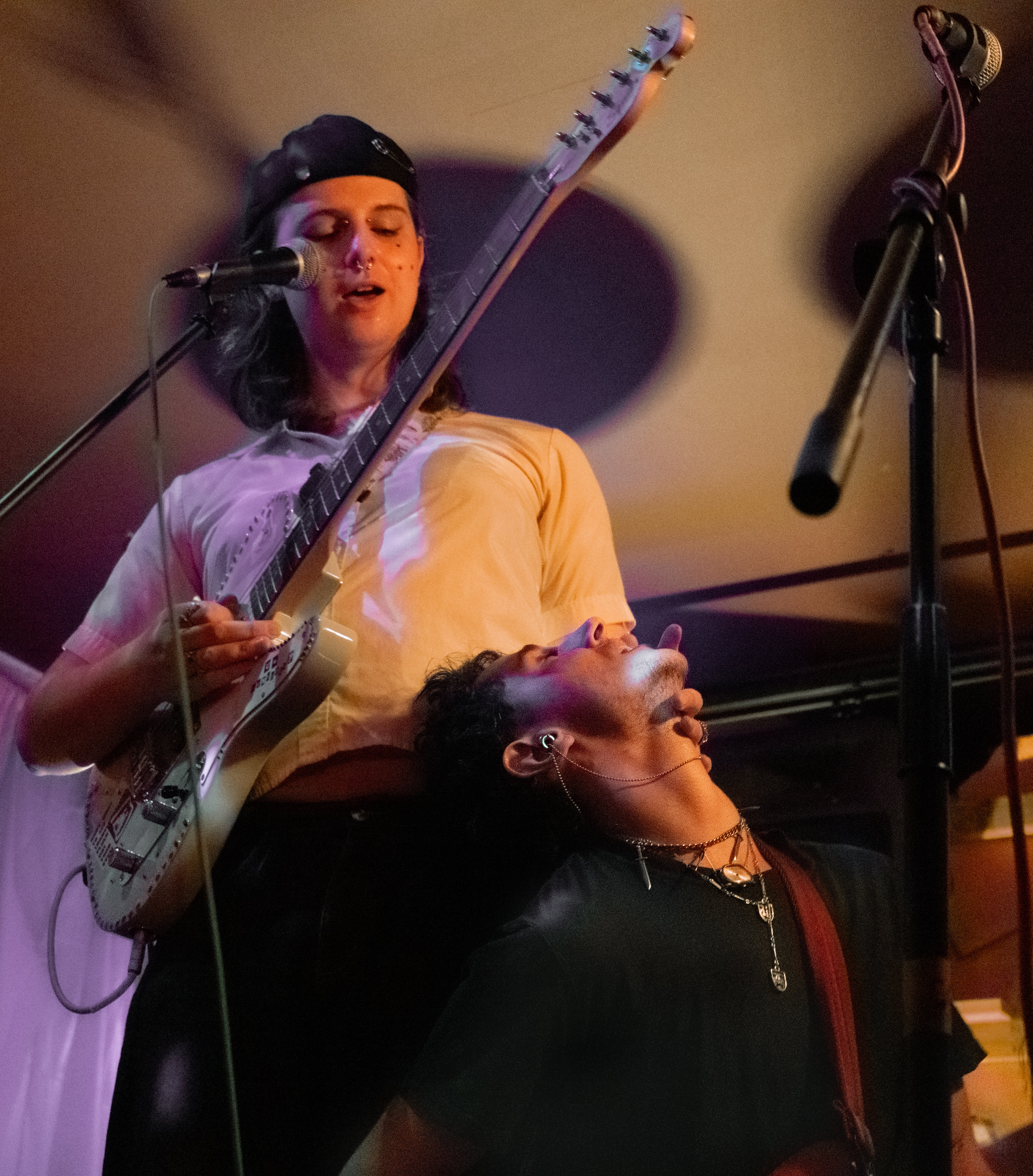 On the heels of a successful debut album release with Um Comma Jennifer Question Mark, singers and guitarists Elijah Scarpati and Fig Regan played exclusively from the album’s tracklist. The excitement in their theatrical stage presence was contagious. During “Old Grimes,” Elijah pulled his pants to his ankles and danced around the stage in only his boxers before kneeling against Fig. He also proudly changed the lyrics from “six months” to “two years” in “Went on T,” indicating the updated amount of time since he’d started taking testosterone. Fig dramatically acted out the lyrics of “Fishy,” imitating tears before before snapping back to her spirited rendition of everything that makes her “the hottest fucking bitch in New York City.” With every line the crowd sang back to the band, their tones grew jauntier and their grins wider.