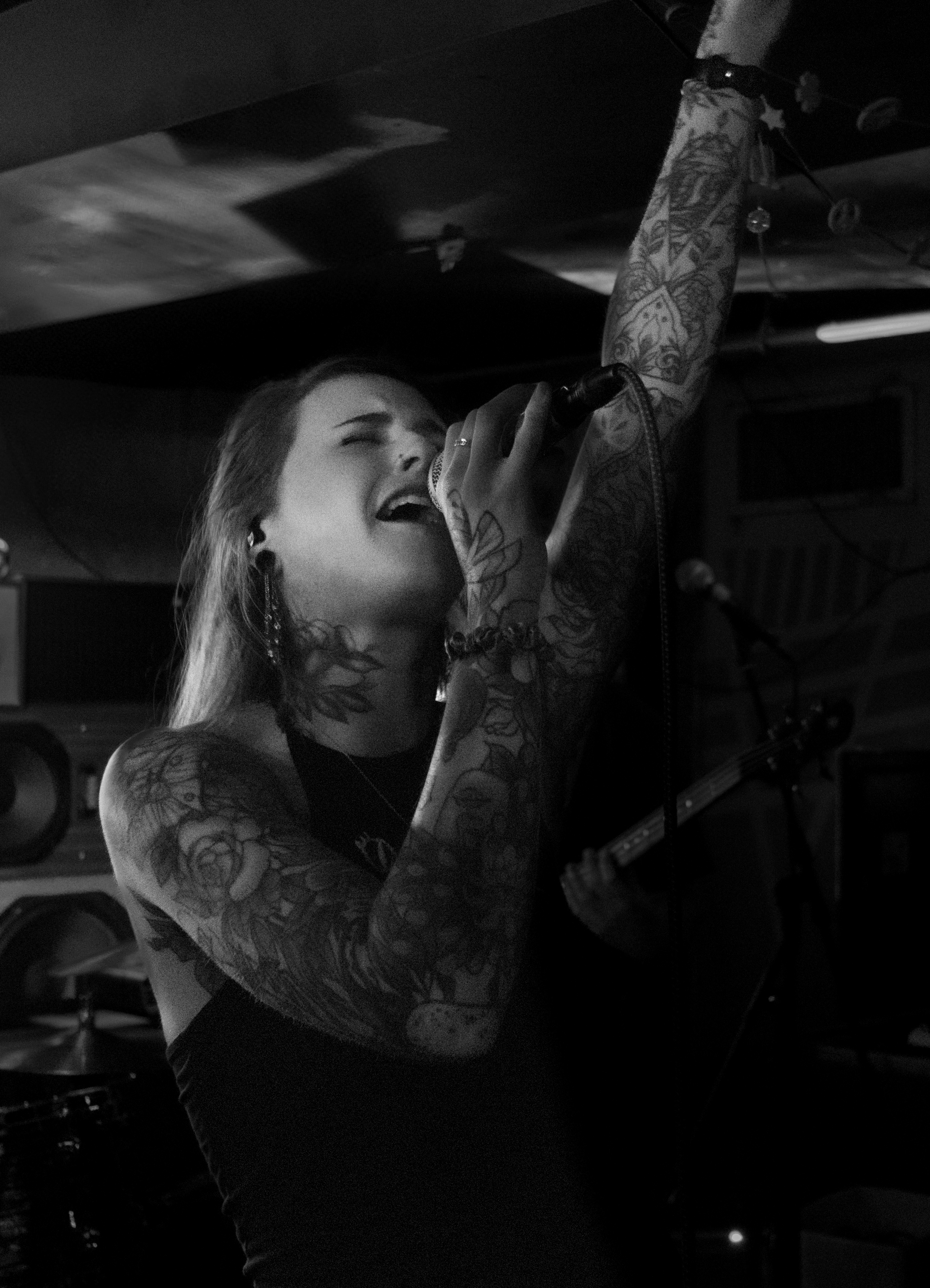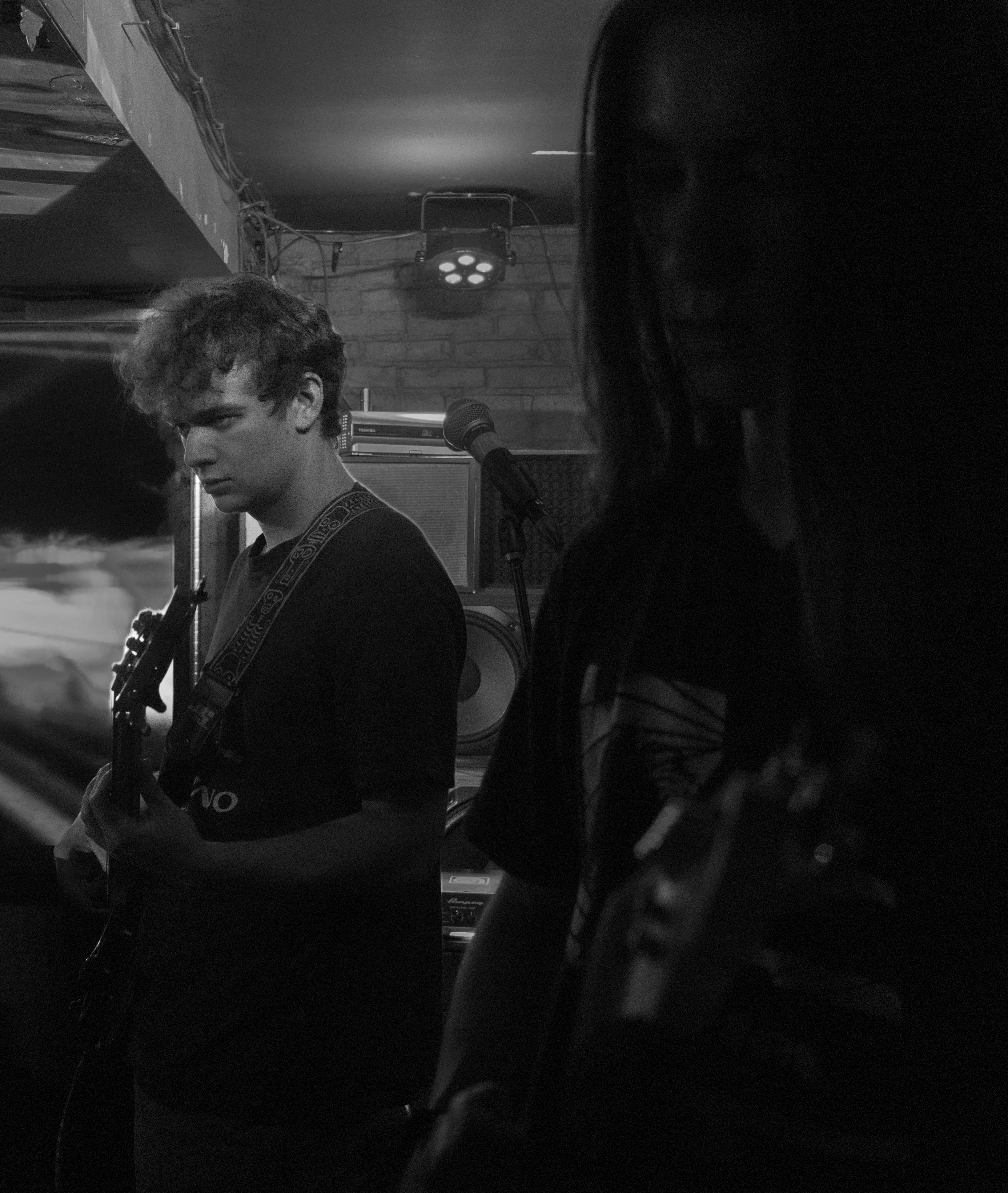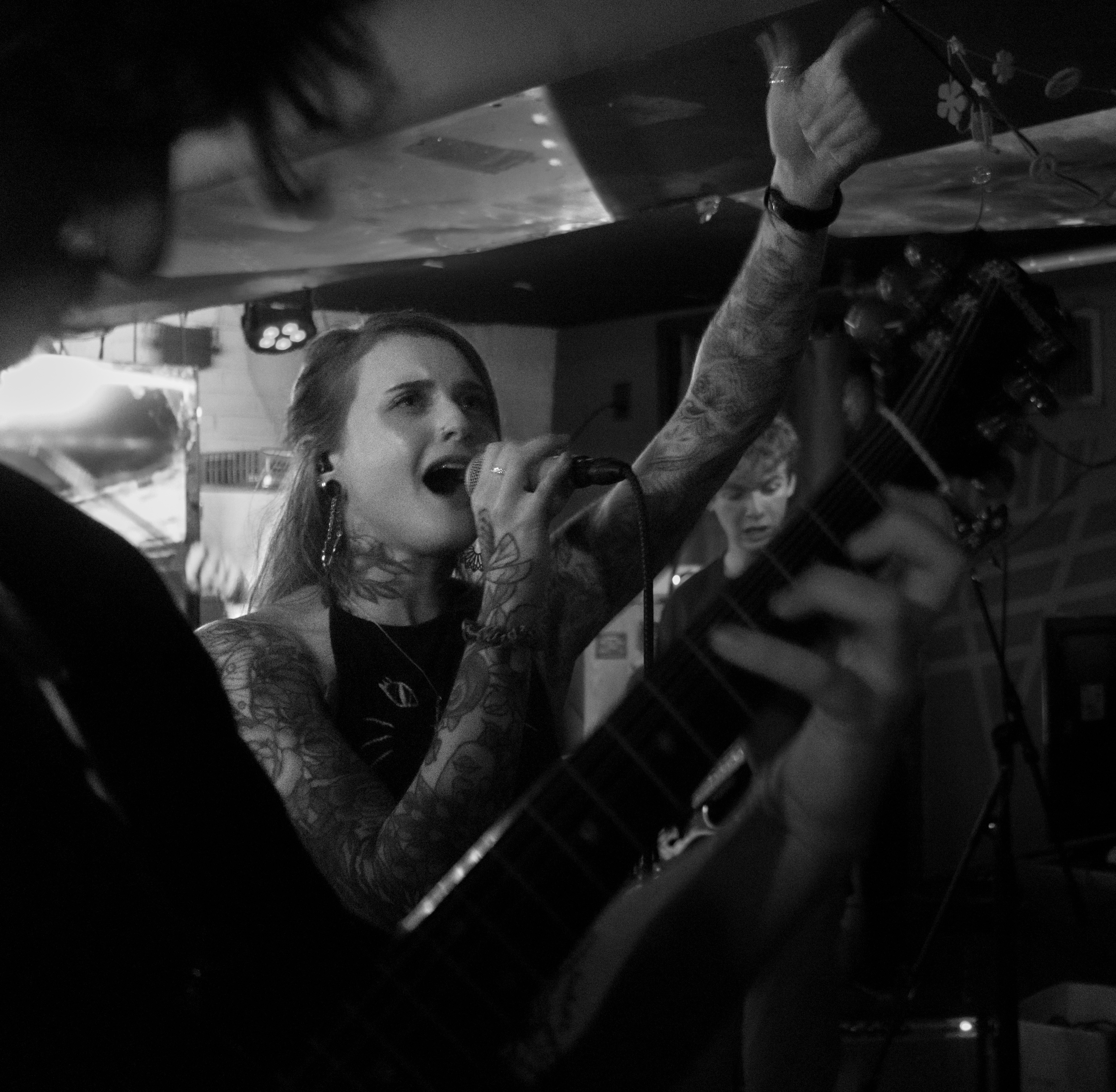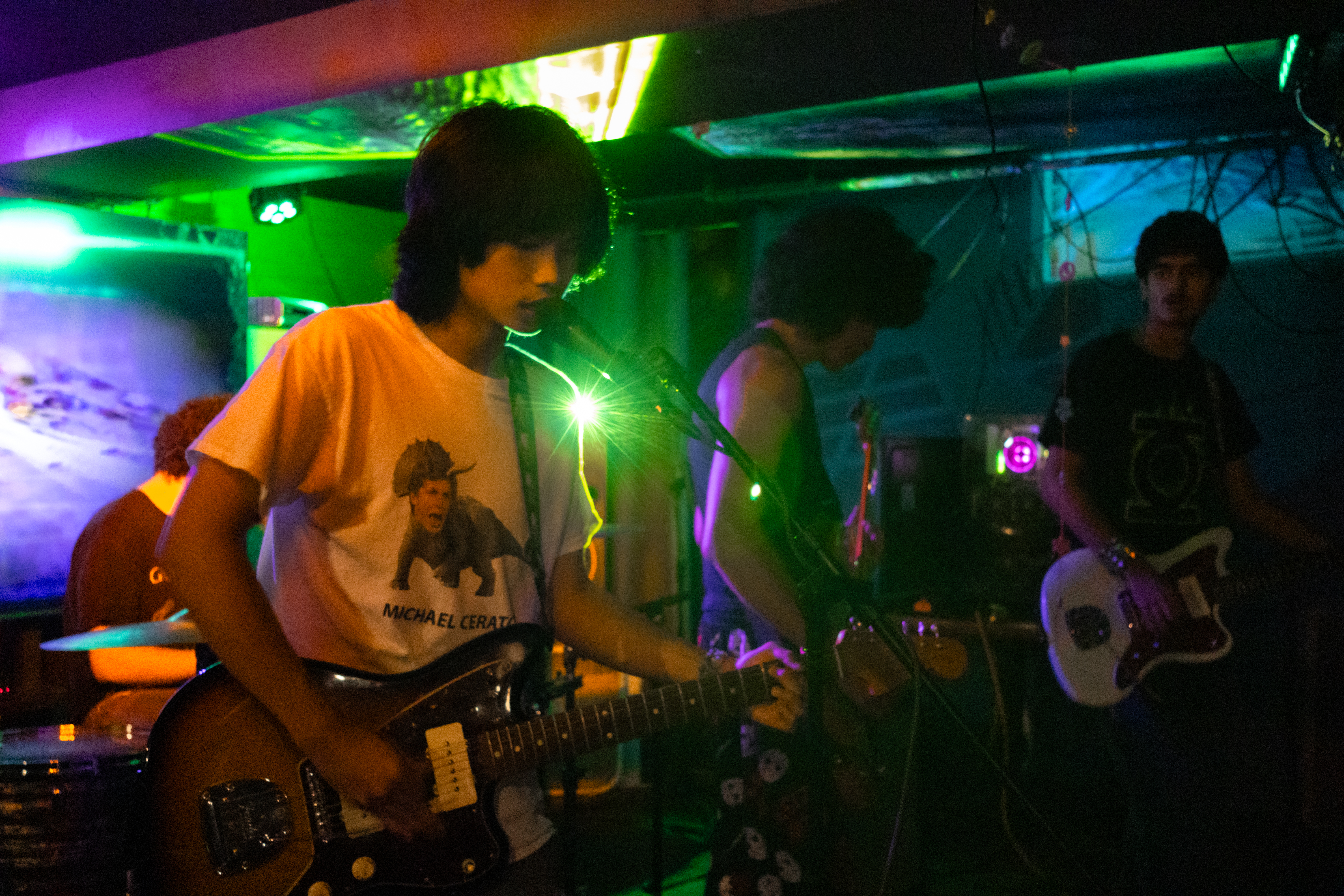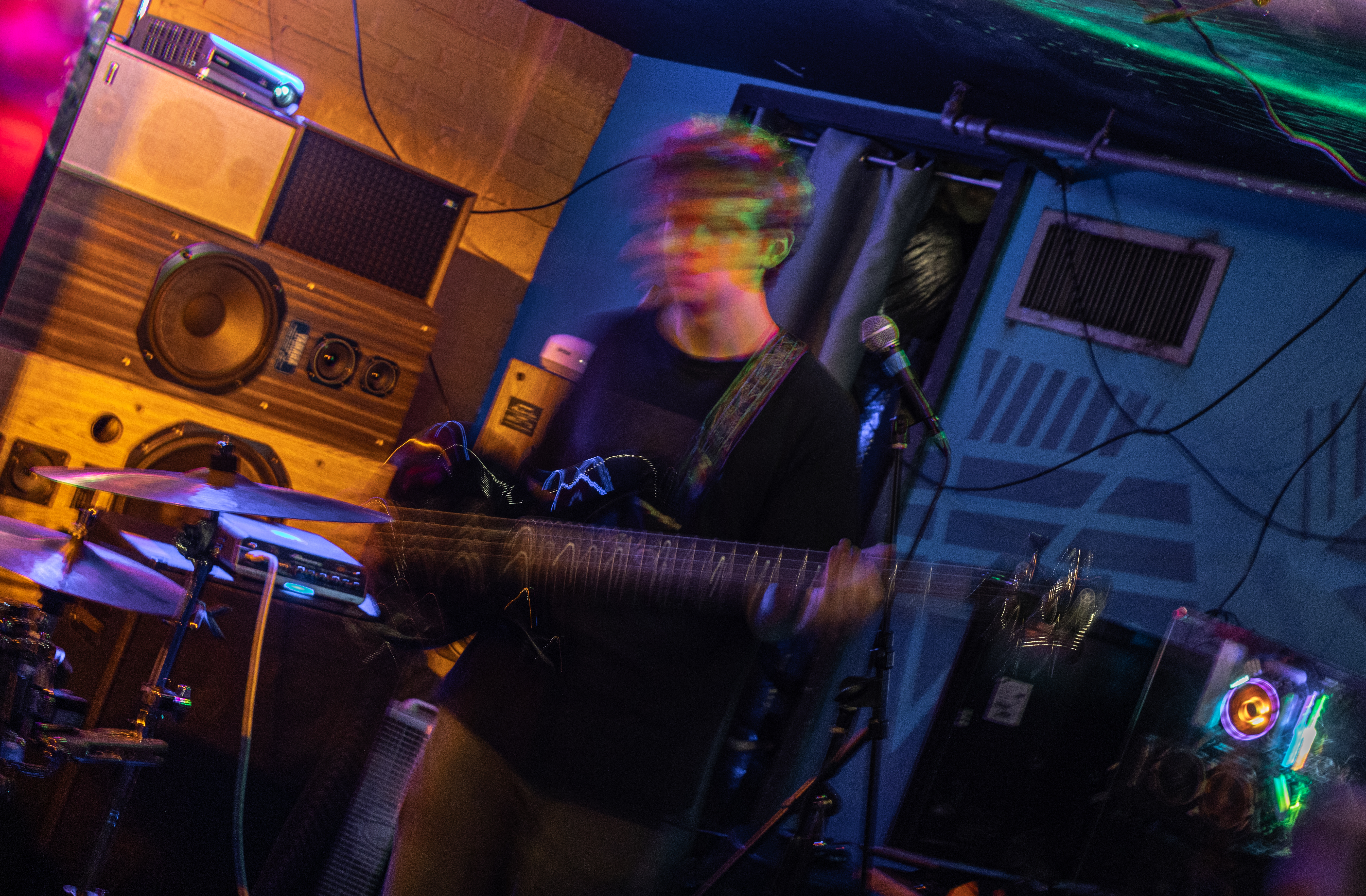 Math-rock band Love For Strangers celebrated the release of their EP “Gone Through Motions” with a short but sweet set Thursday night. They played at The Bassment, a venue tucked beneath Baltimore pizza shop Ema’s Corner. Guitarists Jefferson Hirshman and Nik Redcay, bassist Zach Miskimon, and drummer Jack Naden warmed up the audience with an instrumental song before singer Rachel Byer skipped up to the microphone stand.