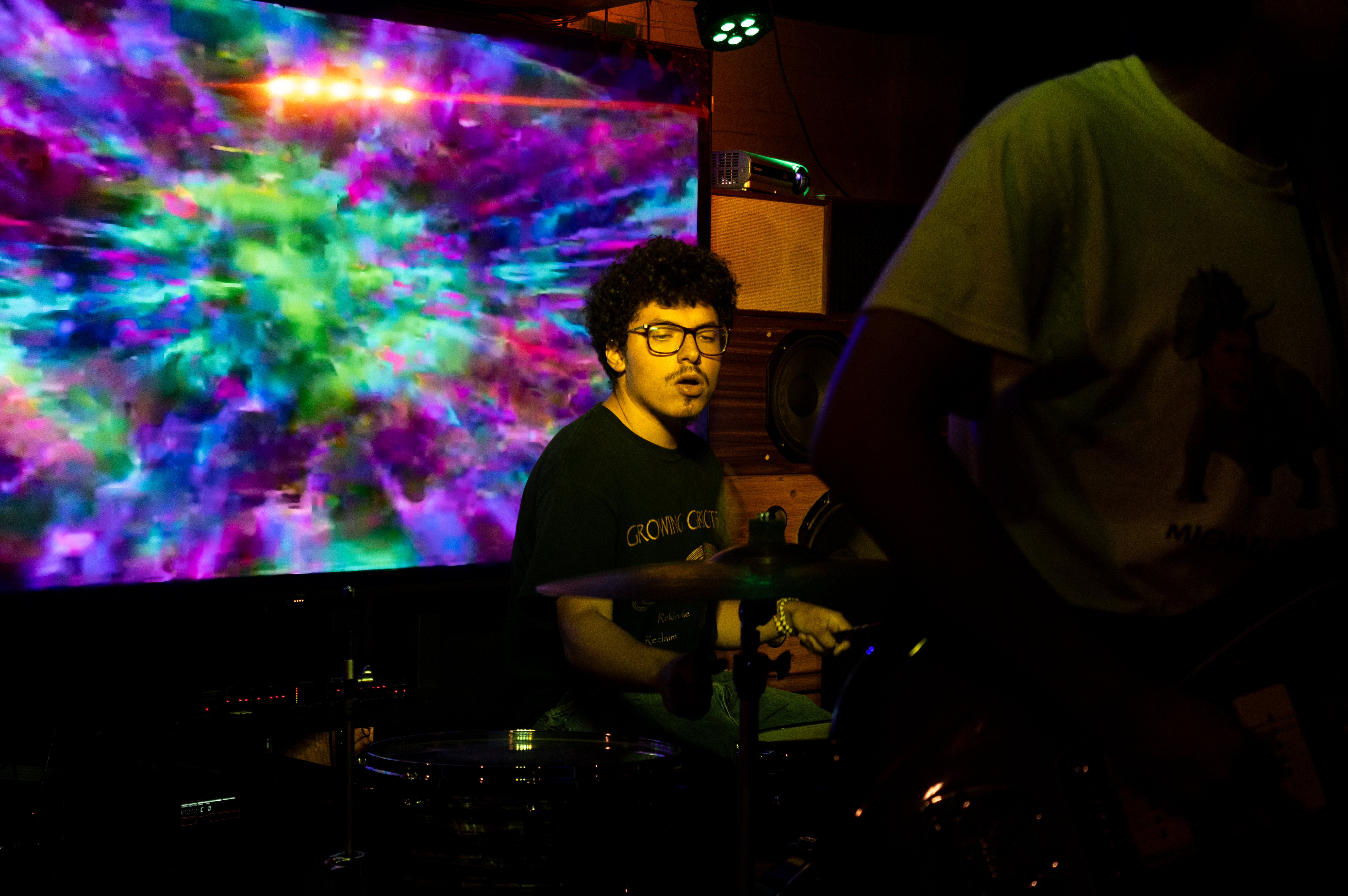 Apricity, an experimental guitarist and drummer duo, opened the night. The drummer kept intricate rhythm to the guitarist’s rapid strumming as each song faded smoothly into the next. “Apricity,” they explained, “is the warmth of the sun in the wintertime.”
