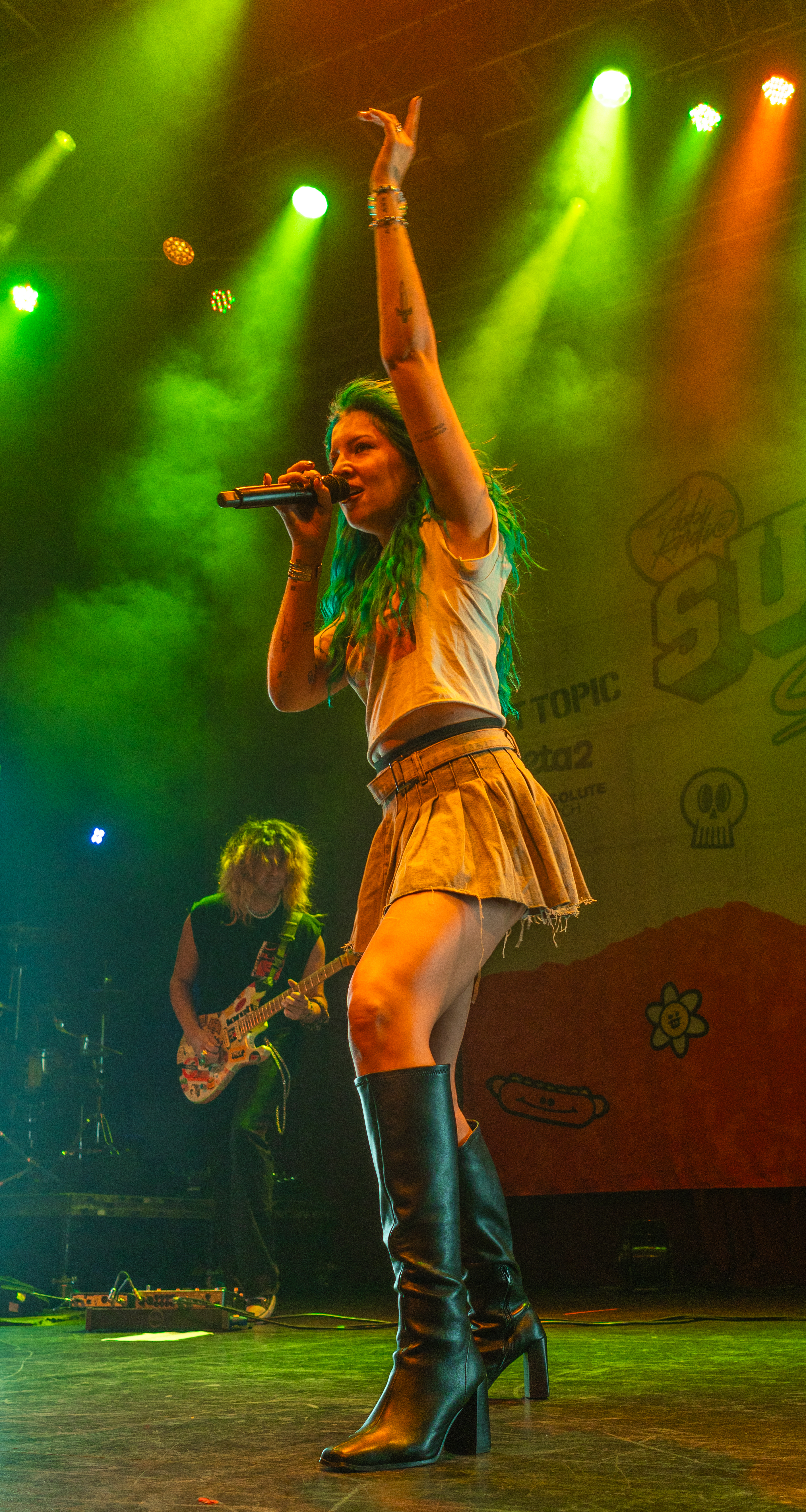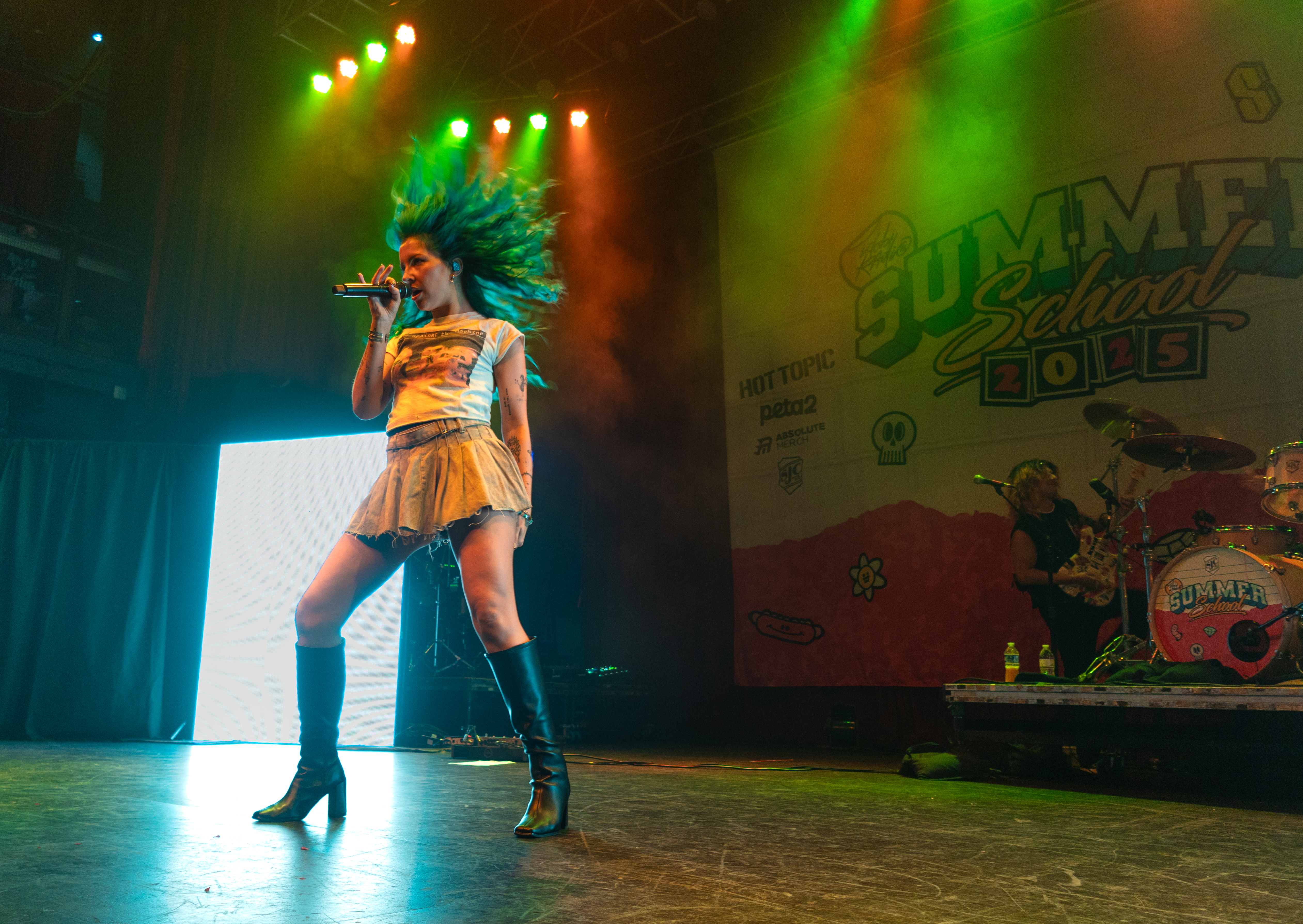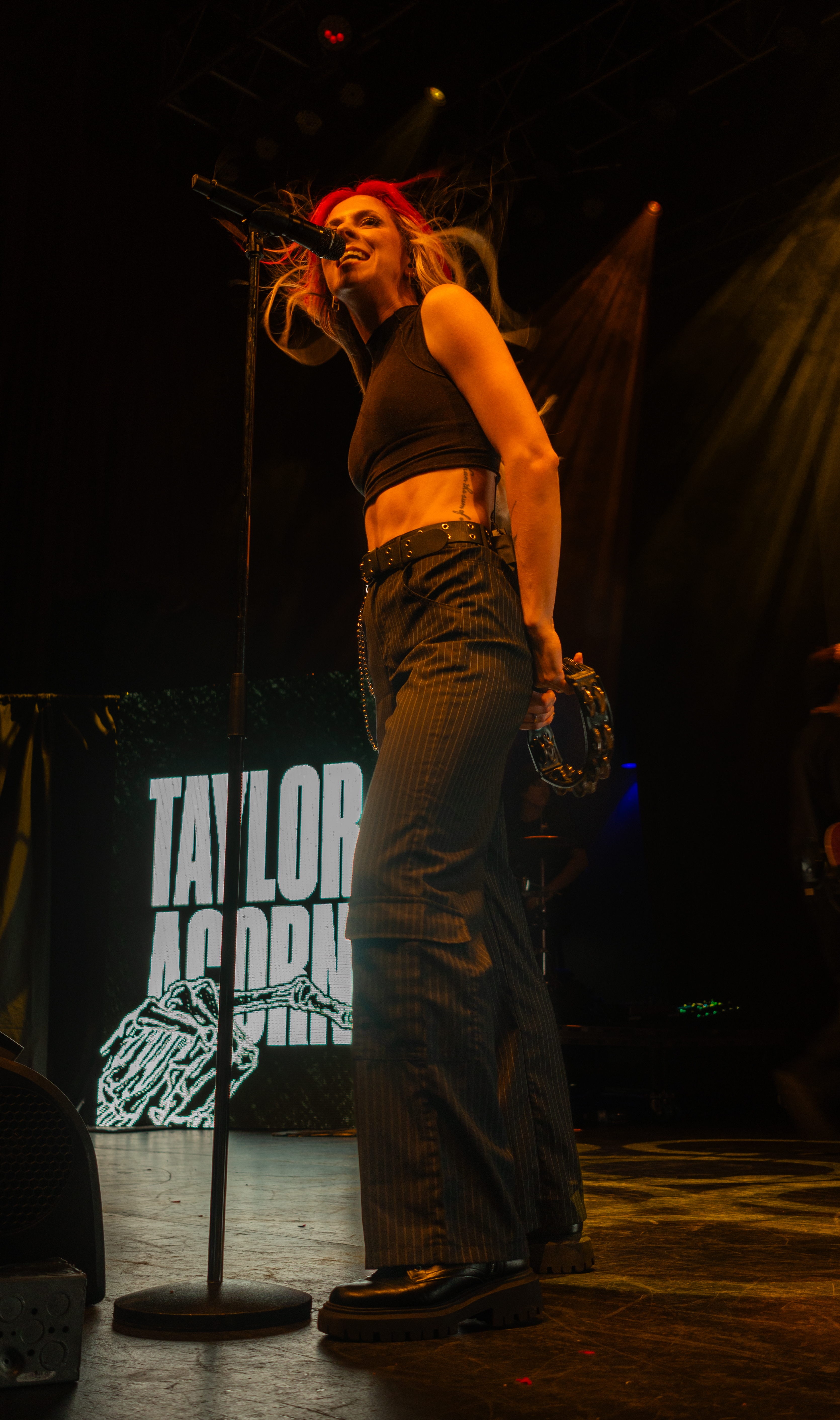 Flairs of other genres can be heard in Acorn’s pop punk power: a twang in her voice that nods to her country origins; a collaboration with EDM artist Said The Sky on “Reminisce.” She even produced a tambourine to accentuate her performance of her most recent release, “Goodbye, Good Riddance.” Acorn flipped as easily between notes as she does between musical styles, belting even while jumping and lunging.