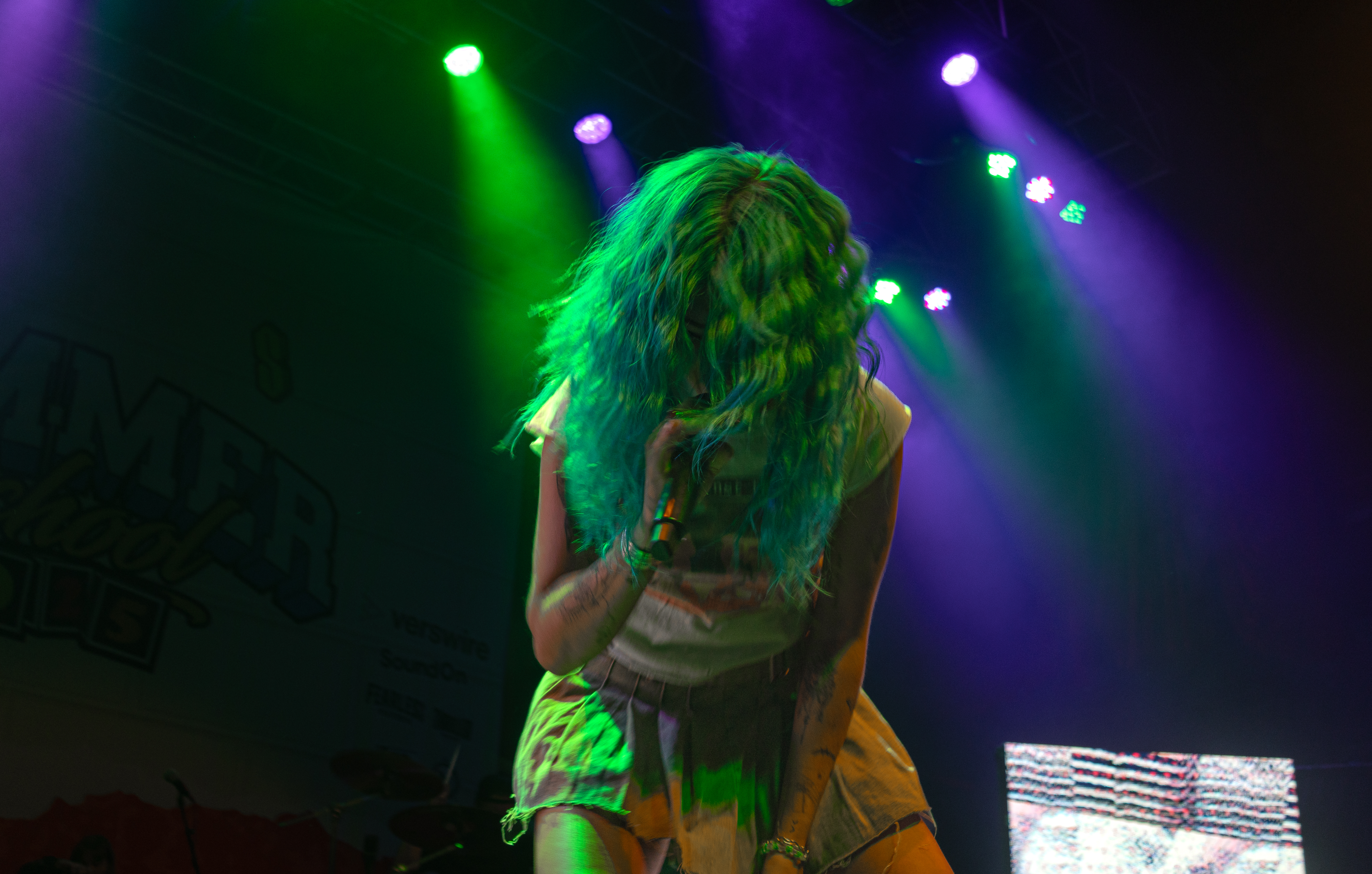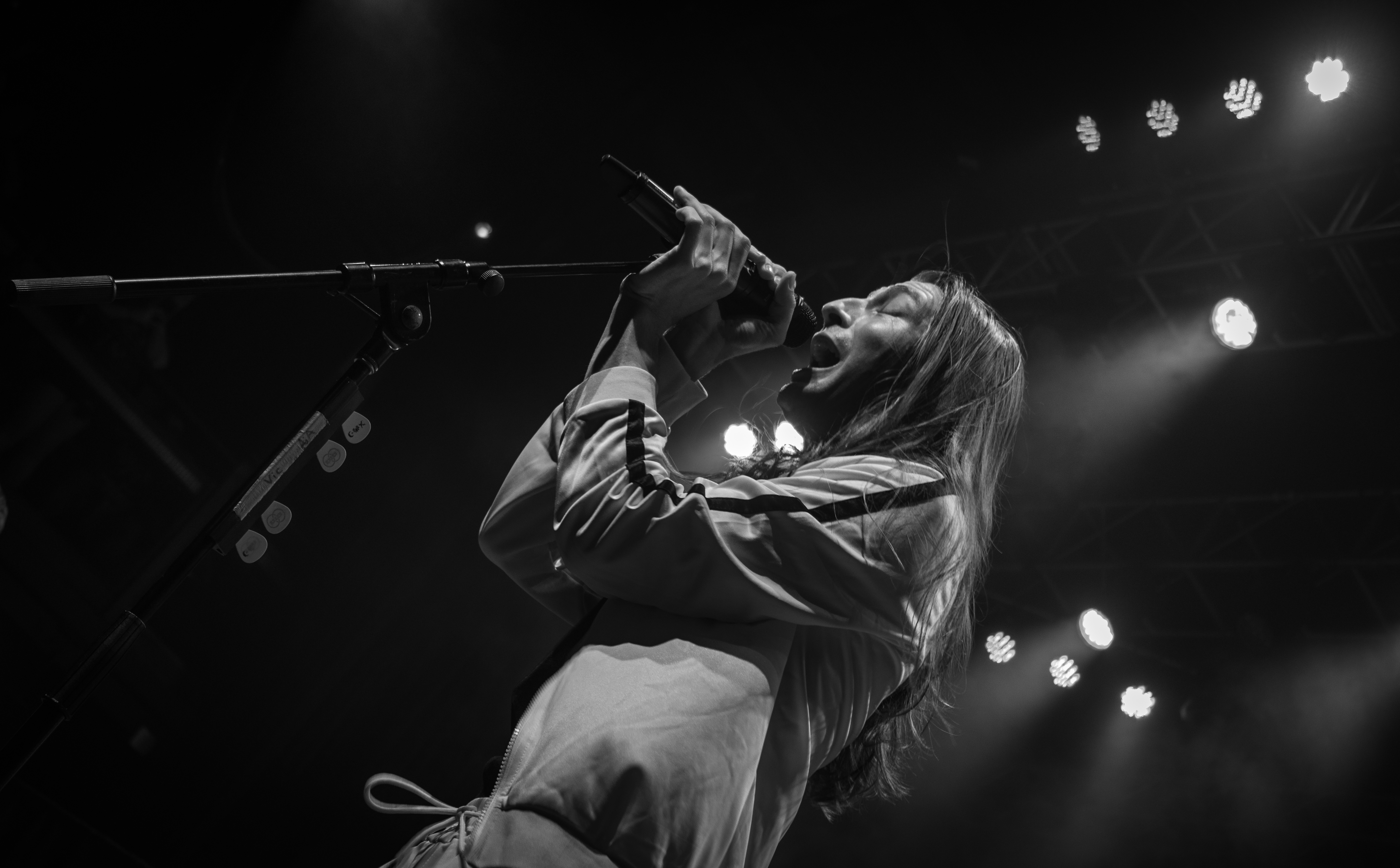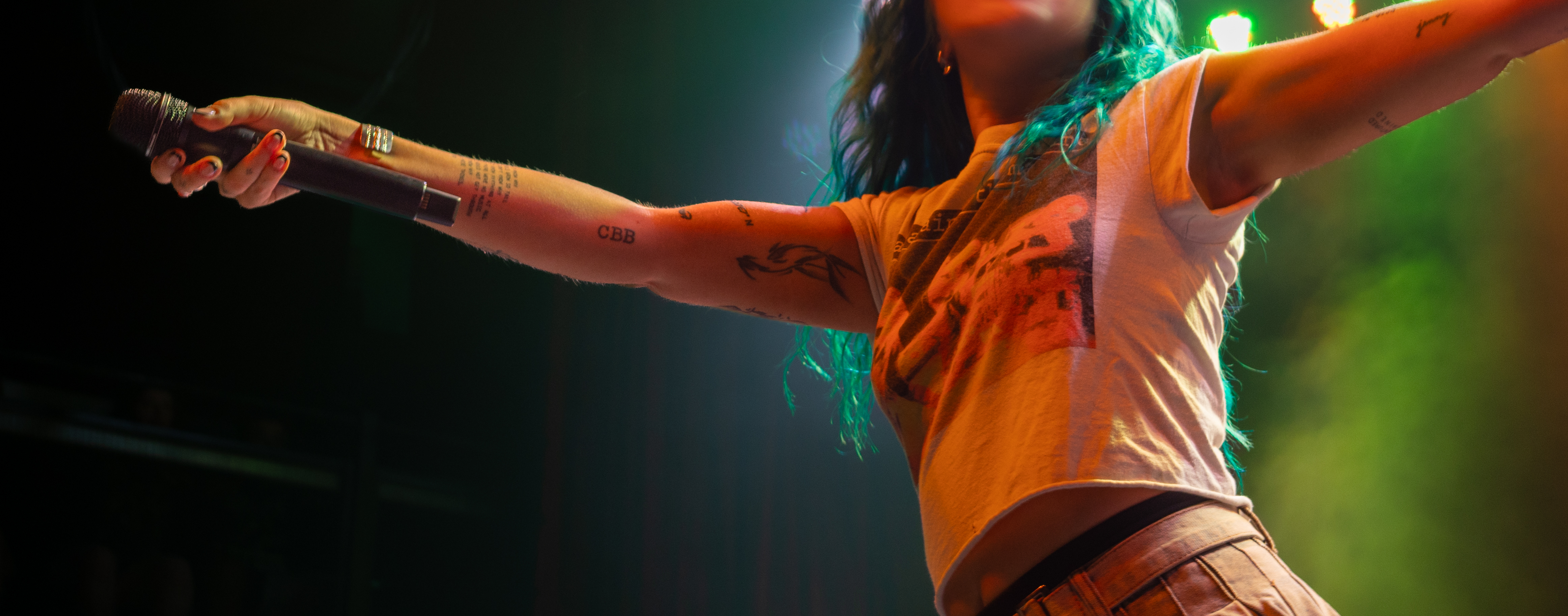 Flairs of other genres can be heard in Acorn’s pop punk power: a twang in her voice that nods to her country origins; a collaboration with EDM artist Said The Sky on “Reminisce.” She even produced a tambourine to accentuate her performance of her most recent release, “Goodbye, Good Riddance.” Acorn flipped as easily between notes as she does between musical styles, belting even while jumping and lunging.
