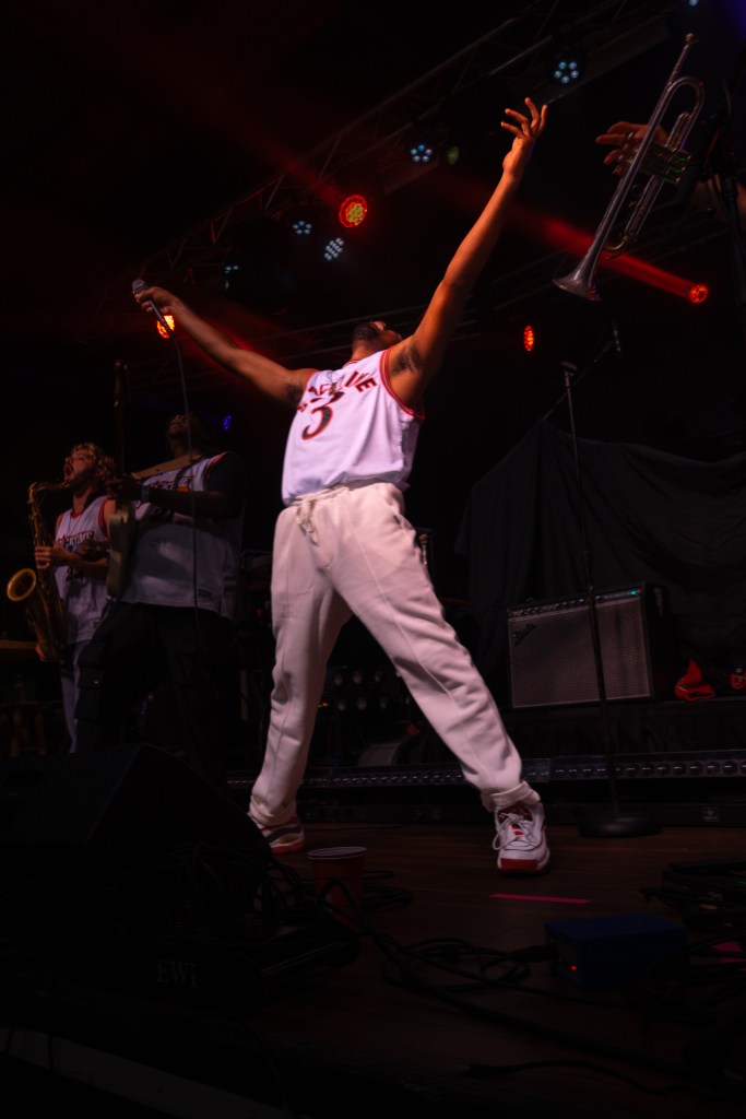 Philadelphia’s SNACKTIME got the audience hyped with their soul and energy before Fitz and The Tantrums. The end of “Smokin’ Drinkin’ Talkin’ Shit” blended seamlessly into a lively cover of Kendrick Lamar’s “Not Like Us.” SNACKTIME then introduced each of the seven band members and their hometowns with a memorable description. For instance, bassist Sam Gellerstein was not only the “mayor of Philly,” but also the “distant cousin of Jason Kelce.”