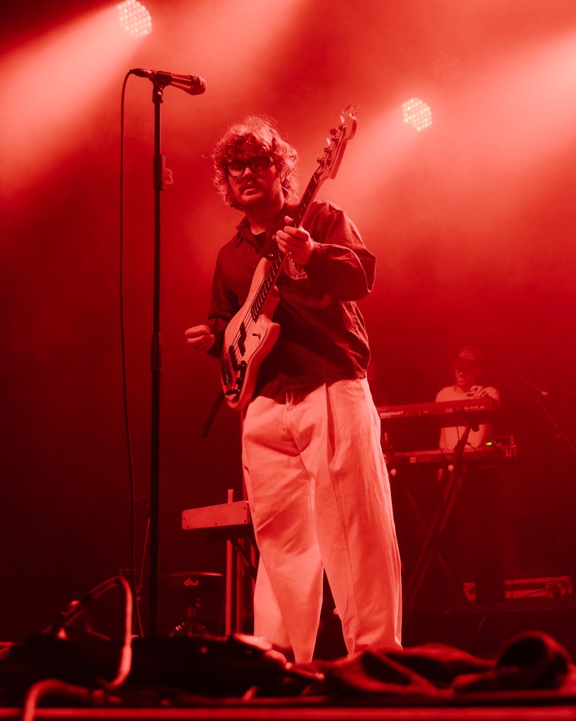 October 3rd was a warm, Spring night in the heart of Fortitude Valley. Fans of The Rions lined up outside The Fortitude Music Hall, patiently waiting for the night of fun that lay ahead behind those venue doors. Before long, 7pm hit and attendees flooded inside and rushed to the barricade to ensure the best spot for viewing. After a while of waiting, the house lights dimmed and the audience erupted in applause as queer indie-pop artist Ixaras entered the stage to start the night off right. Ixaras played a handful of songs, from her top tracks on Spotify like “DO YOU LIKE GIRLS?” and “WHATS GOOD,” to fan favourites from her debut album such as “sprouts” and “salt”. She performed effortlessly with a smile on her face, an attitude that clearly rubbed off on her audience as they all waved their phone torches and danced along to her tracks. After a half hour set full of her best tracks that weave between themes of identity and unfiltered self expression, while also expressing her humble and kind demeanour, Ixaras warmed the audience up perfectly for the night of music that still laid ahead.