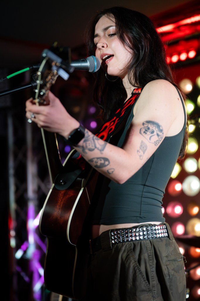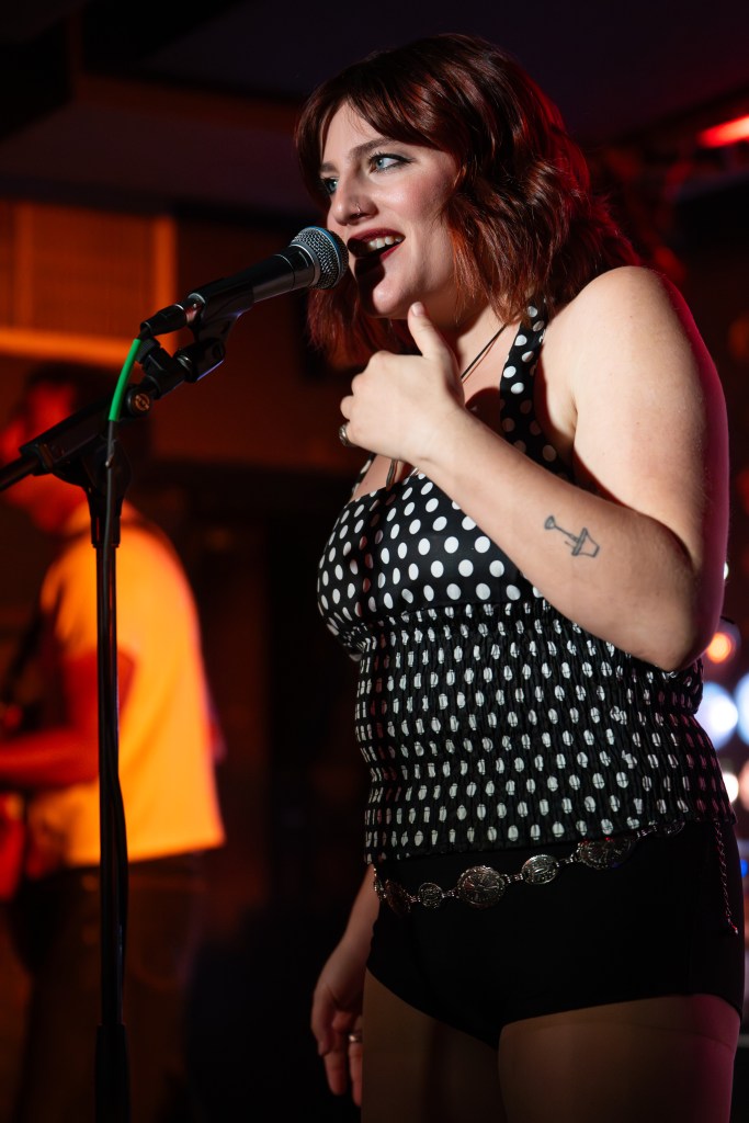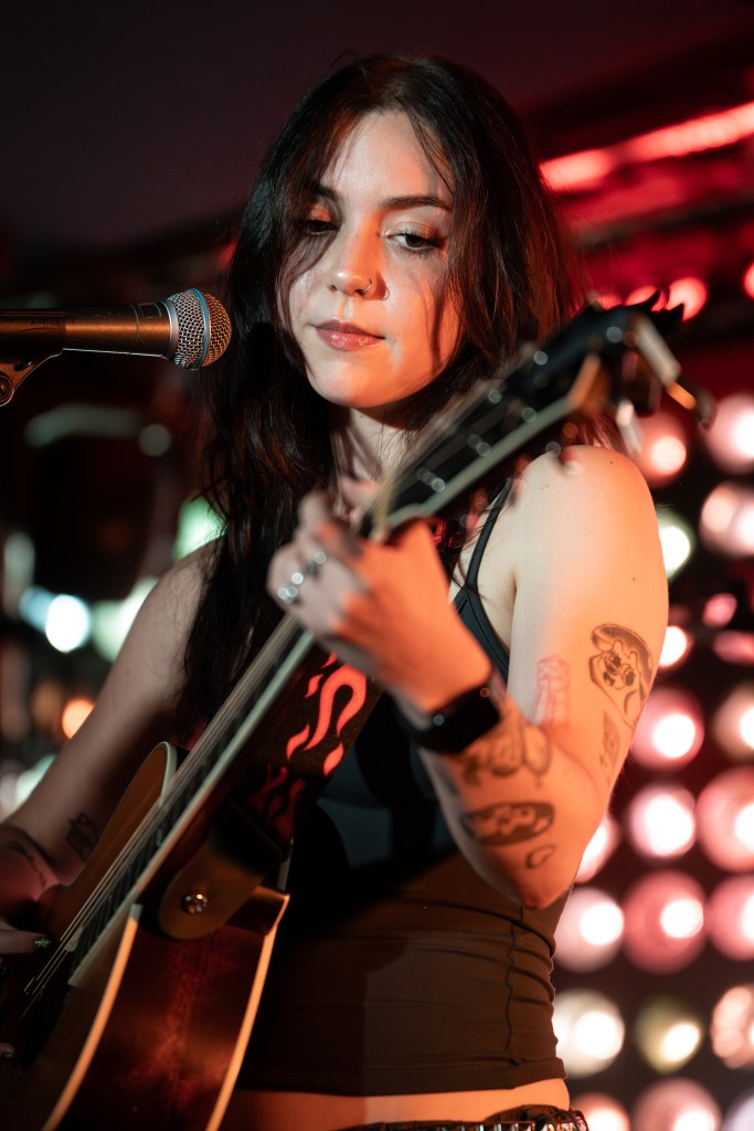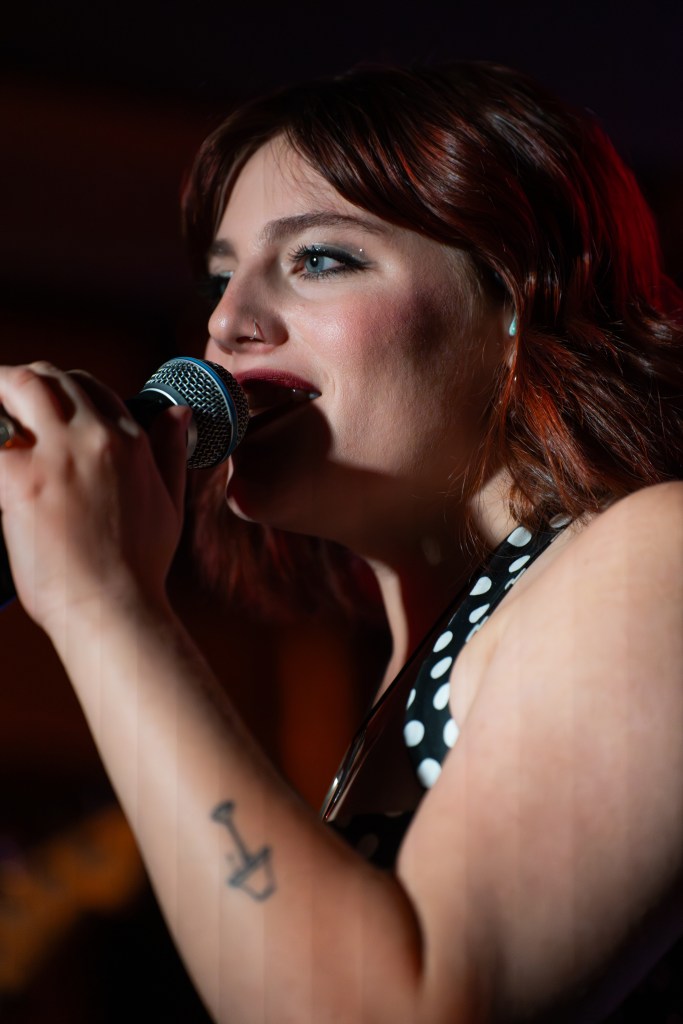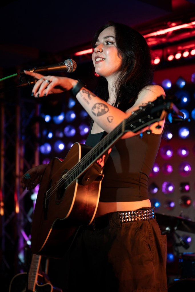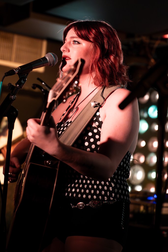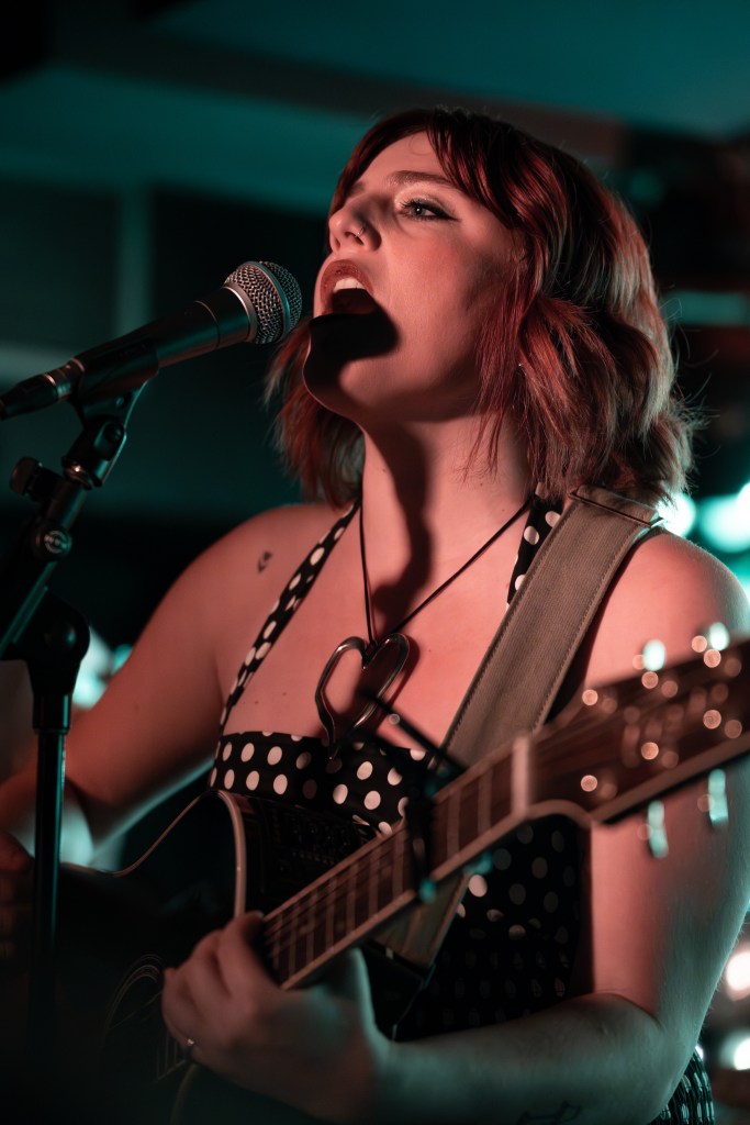 Laura Elliott opened the evening with a variety of original songs and a cover of “Mr. Brightside” by The Killers, which definitely stood out as a set highlight, with the audience singing along to the entire second verse (which Laura pointed out to be exactly the same as the first one).