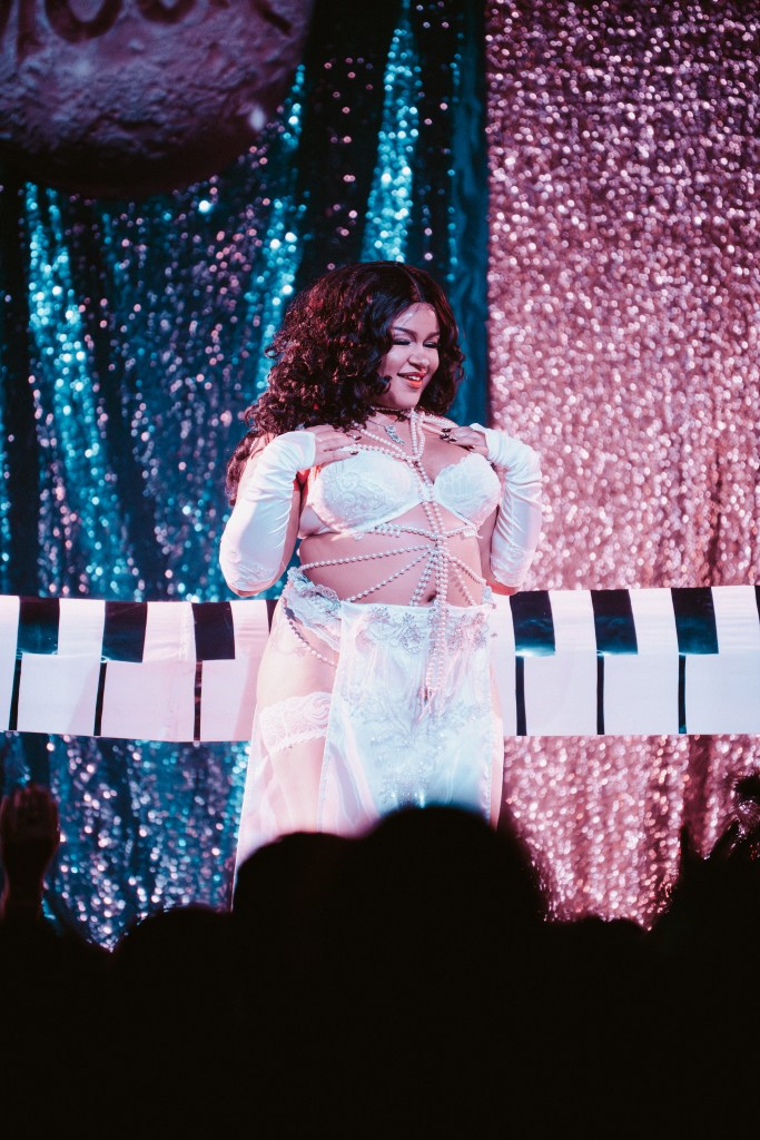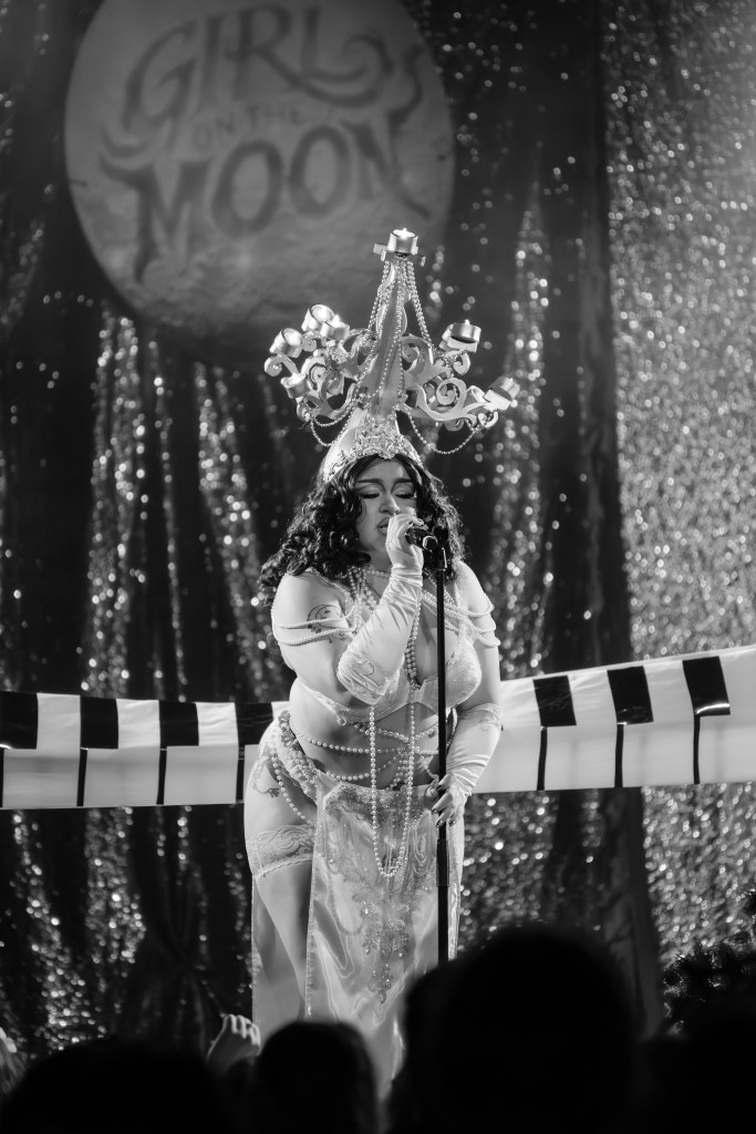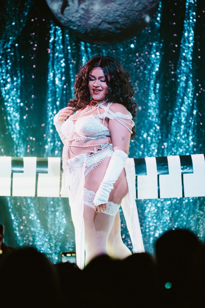 Malea Kimberly kicked off the night with stunning live vocals followed by a captivating performance set to Doja Cat’s “Freak.” Her gorgeous silver outfit was complete with an ornate chandelier headpiece. She is originally from Nevada and moved to New York City at age 18 to chase her dreams. She is a model, singer, actress, director, and host, and was a perfect opener for the show, serving as an inspiration for everyone in the crowd that night.
