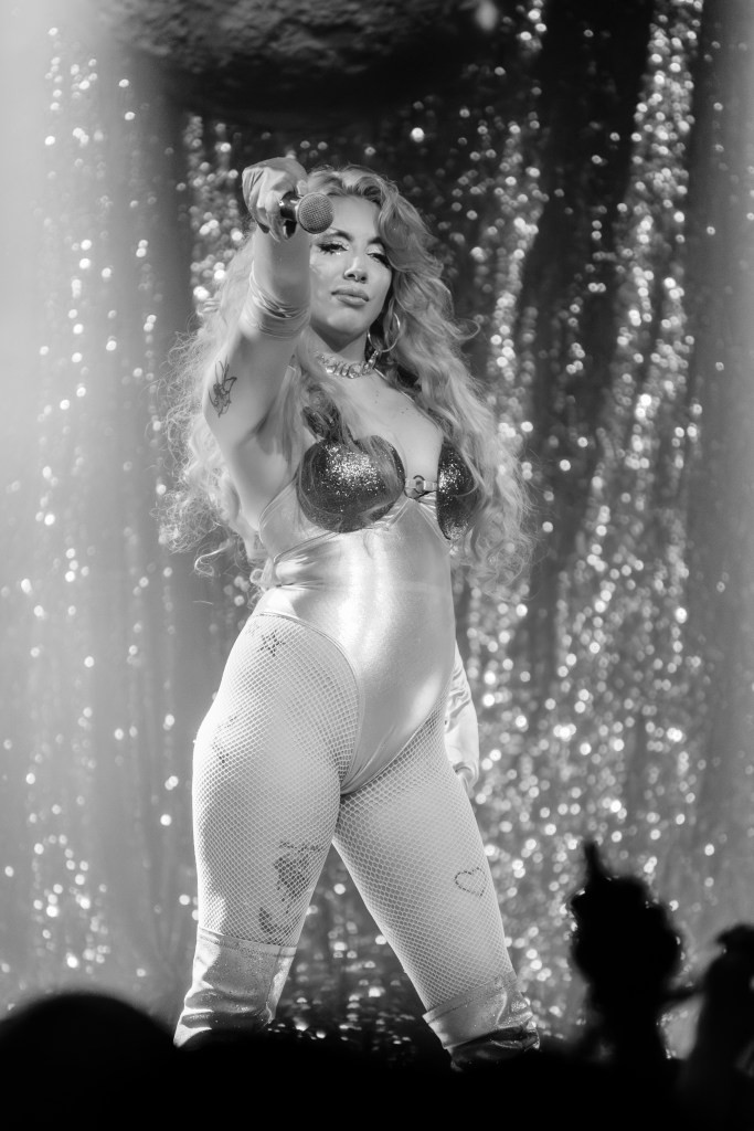 After these three openers set the tone for the night and excited the audience, it was time for Chrissy to perform. She hit the stage with a dramatic performance of “Brain,” which is featured on her latest project, Christine. Every song on this album was played live, including fan favorites like “Aria” and “Passionfruit,” which was exciting for all of the fans in the room. The numbers were perfectly choreographed and Chrissy’s powerful voice echoed throughout the room during each song. Some other musical highlights of the night included the playing of older songs like “Cherry Do You Love Me” and “I’m So Hot” (which was the encore), as well as the unreleased songs, “Spite” and “Andromeda.” It was especially impressive to hear the three key changes in “Aria” live. However, the entertainment didn’t stop there. Chrissy pulled out all of the stops for these shows, including full costume changes, outfit reveals, and themed interludes between every song on the setlist. This helped the audience become fully immersed in the experience and drop them right into Chrissy’s intergalactic, sapphic world. These things, combined with the intimate space, created an unforgettable concert for all attendees.