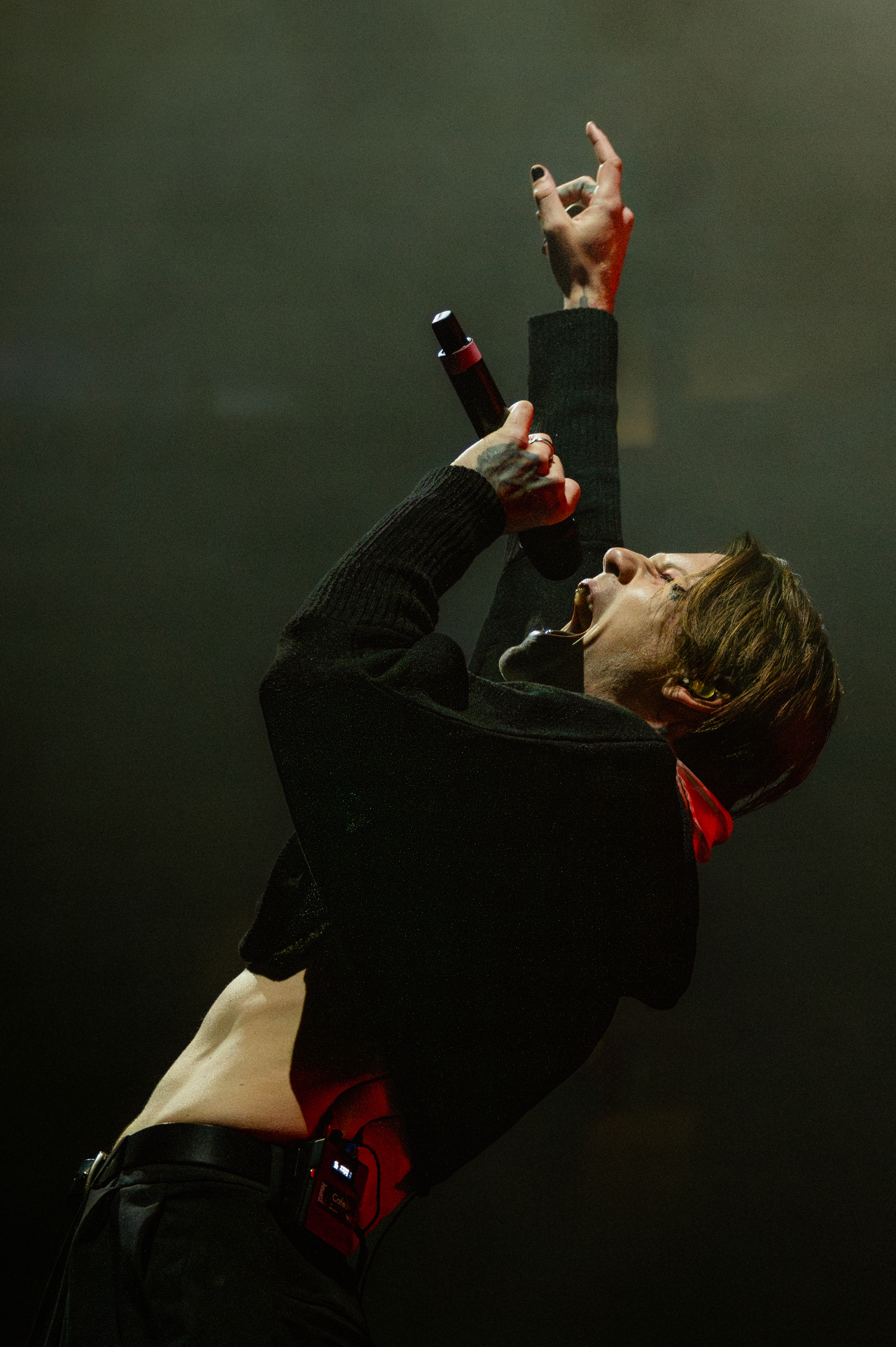 Beartooth went on to play “In Between,” from the album Disgusting, and then “Doubt Me” from their 2023 album Surface. A few songs later, just before they performed “Lines,” Caleb pointed and shouted into the audience, “Are you having a good time in the fucking pit? Prove it! Right Fucking now, prove it! Jump! Jump! Everybody fucking jump!” The crowd instantly complied and the pit began pulsating, echoing Caleb’s jumps on the stage.