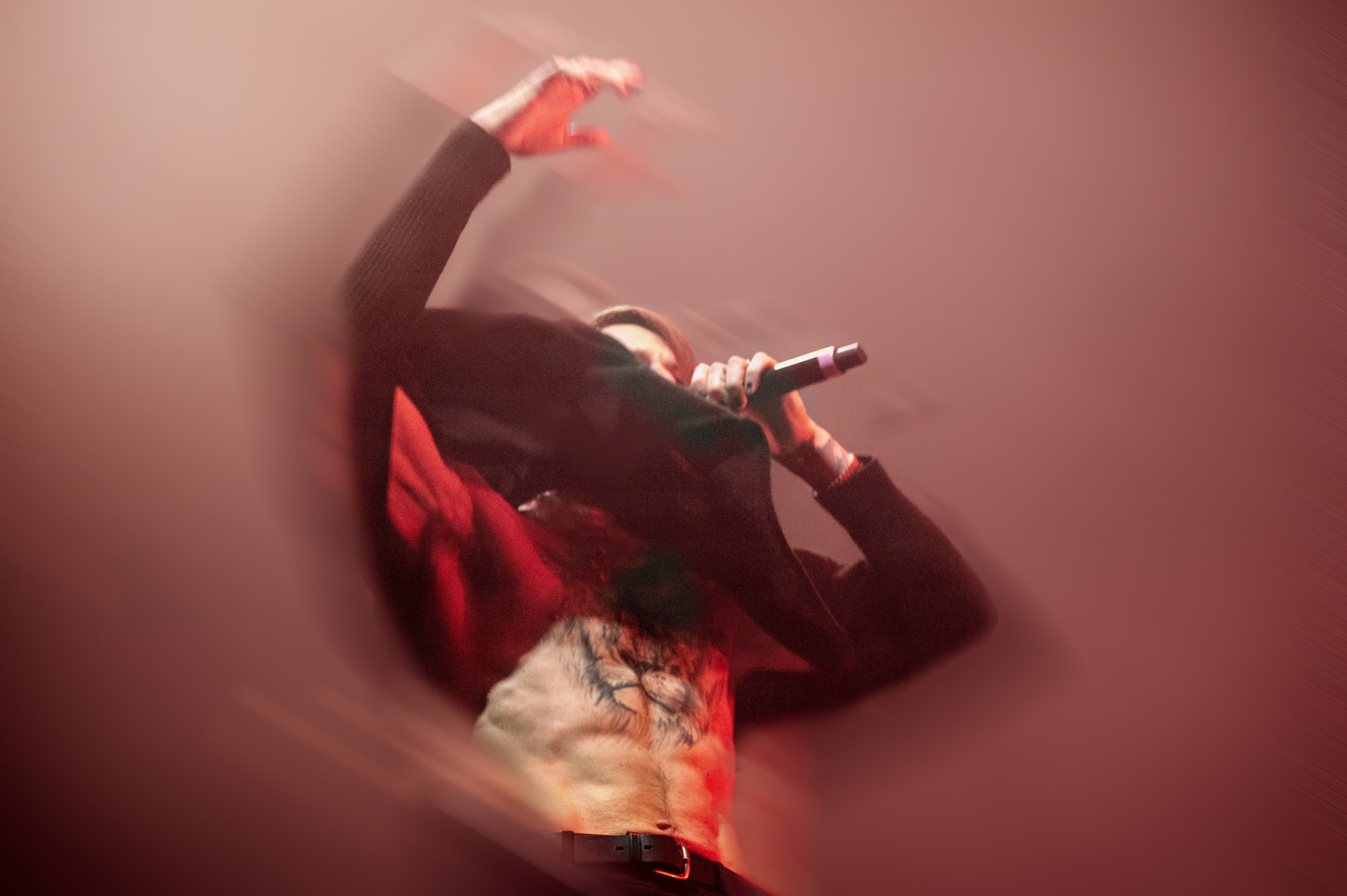 Then, Shomo went off the stage and came back a few moments later to sing Beartooth’s newly released song, “Free.” At this point, he had freed himself from his shirt and unleashed the lion- a full-torso tattoo of a lions head. The new song perfectly showcases Caleb’s incredible vocal range, transitioning from beautiful falsetto notes to guttural screams. It was clear that this was already a favorite as many of the fans were singing along.