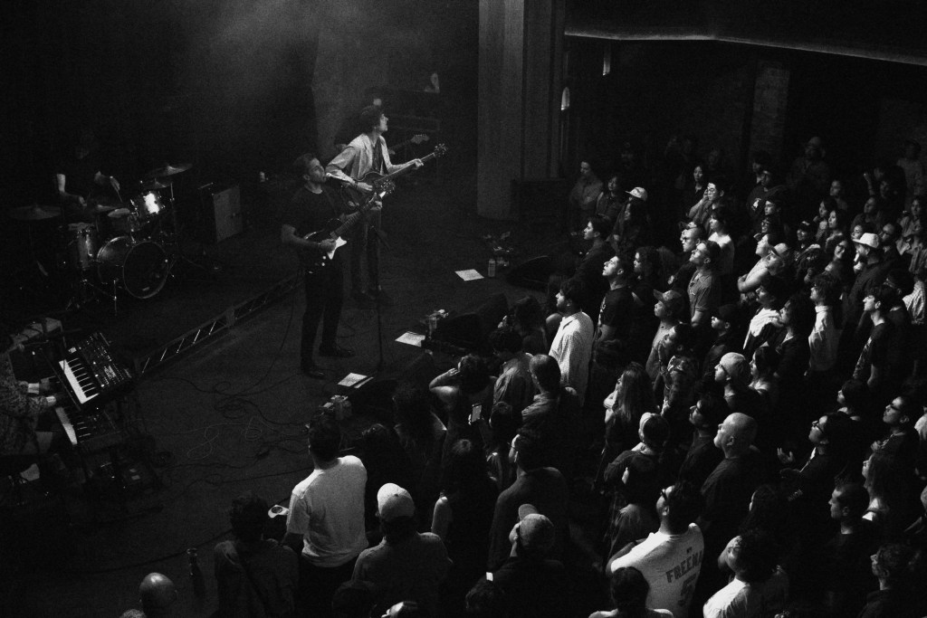 The lights don’t cut out all at once. Instead, they dim slowly over Pacific Electric’s somewhat industrial interior, settling into a warm, amber glow that spills across the stage and out into the crowd. The space feels new. You can tell it hasn’t fully settled into itself yet. Tucked into an alleyway, it still carries that just-opened energy. People are figuring out where to stand, how the room moves, what it feels like when it fills up. There’s something especially fitting about that. This brand new venue is hosting a band playing their first real album in nearly two decades. Voxtrot hasn’t released a full-length record since 2007, and now they’re back, stepping onto a stage that’s just as new as the music they’re playing.